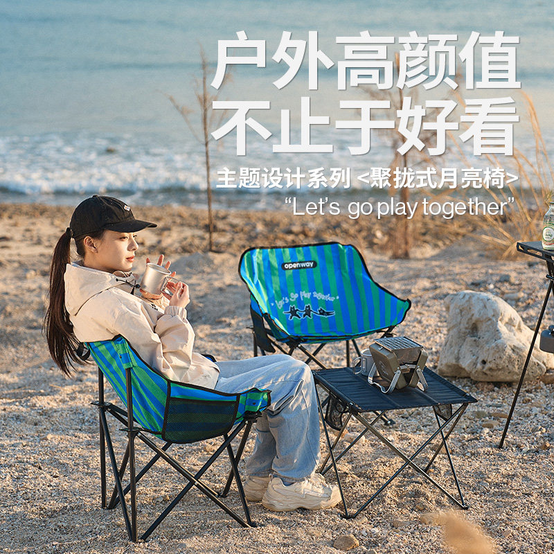 📚 沃特曼户外折叠椅靠背躺椅加高月亮椅露营午休凳子便携沙滩钓鱼椅