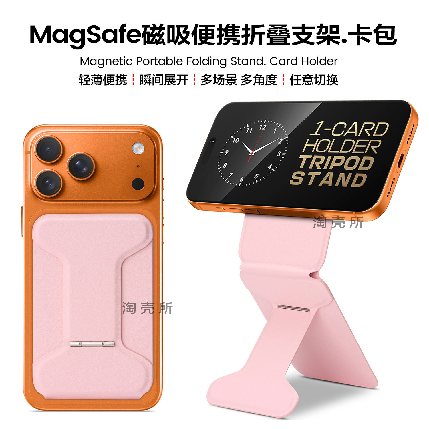 📚 magsafe强力磁吸手机支架卡包三脚架桌面自拍超薄多功能折叠便携