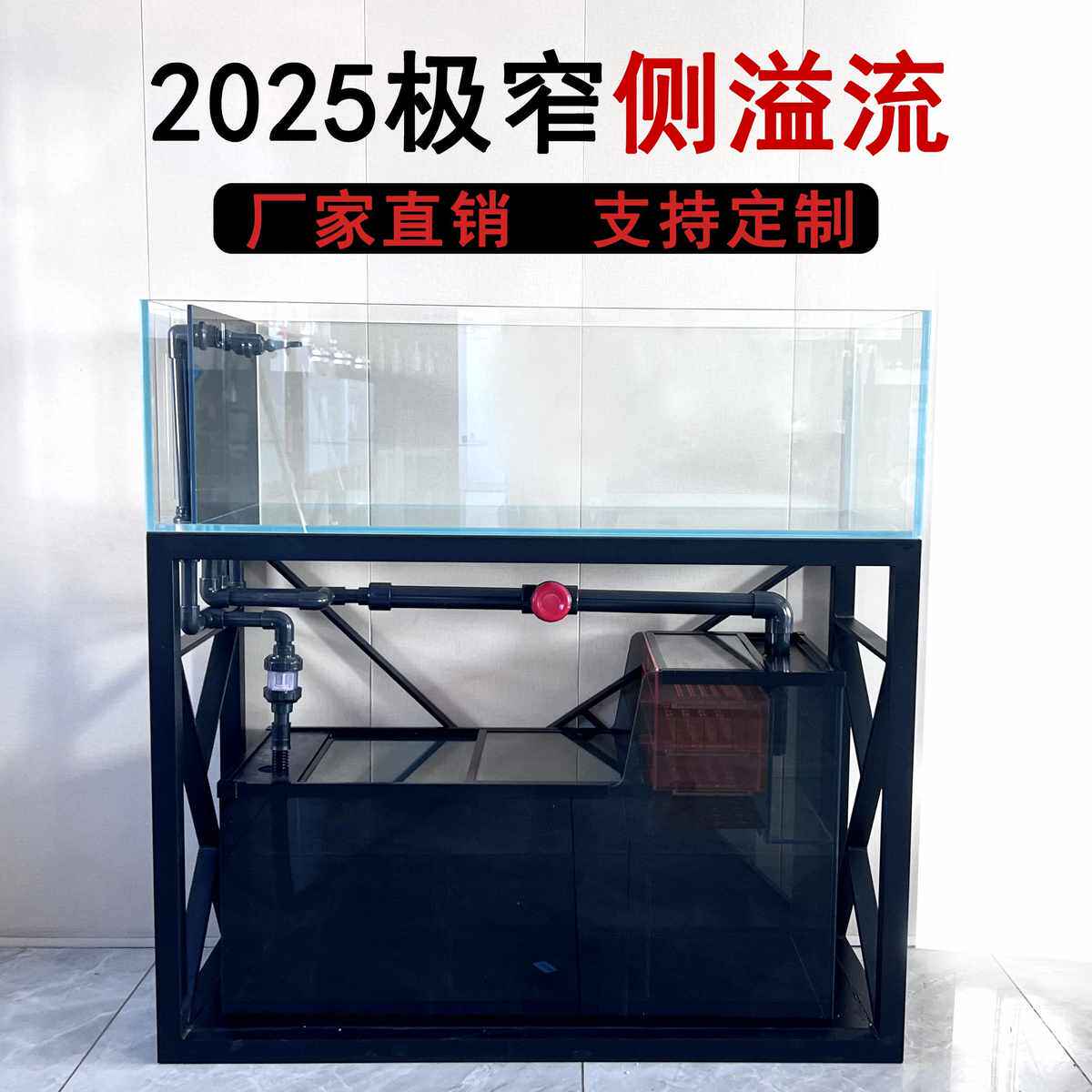 📚 极窄黑玻侧溢流生态溪流缸超白玻璃鱼缸底滤客厅大中小定制一套