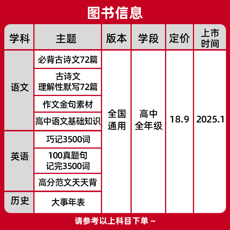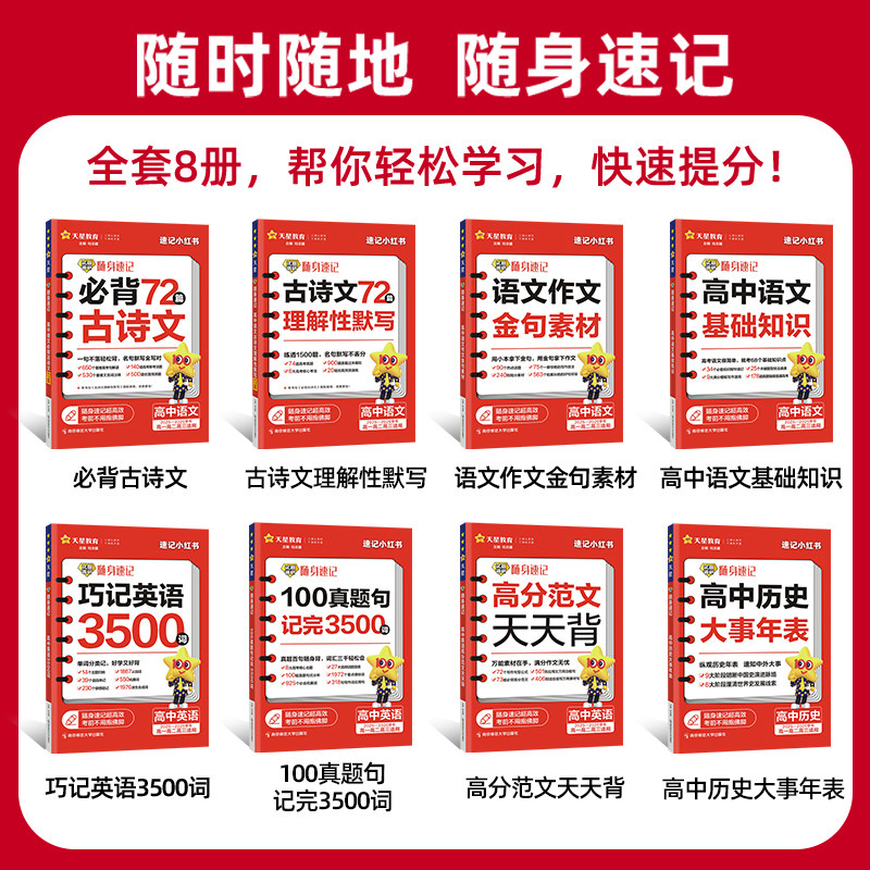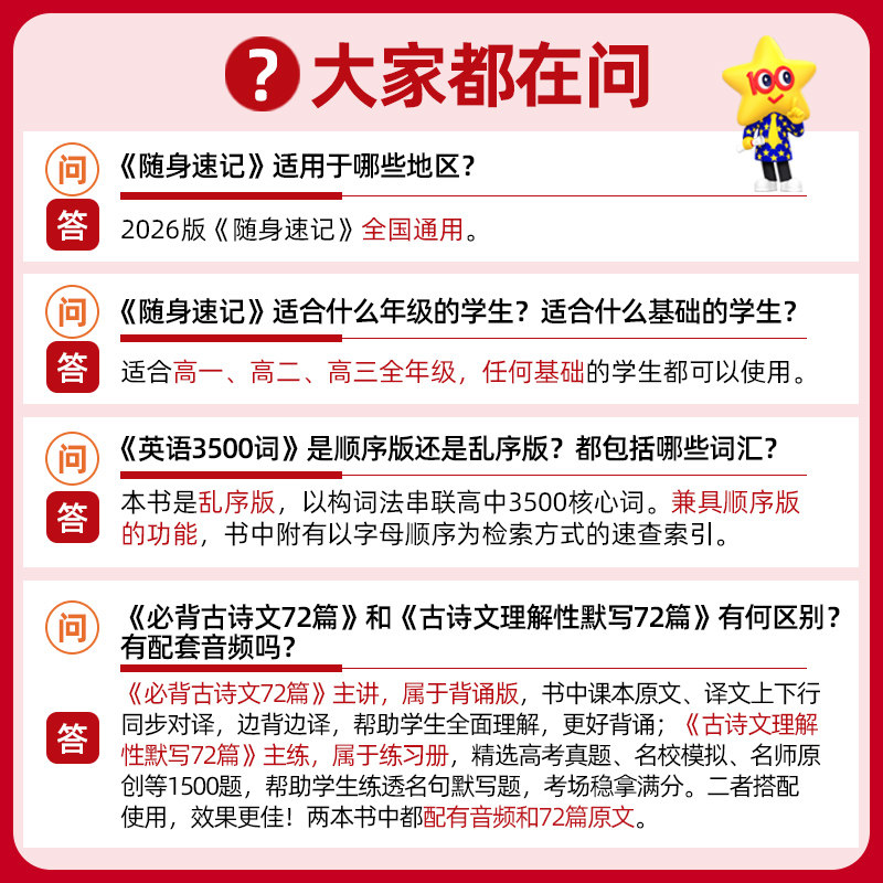 📚 2026试题调研随身速记语文必背古诗文72篇语文古诗文理解性默写72篇巧记英语3500词高分范文天天背历史大事年表高中单词通用口袋书