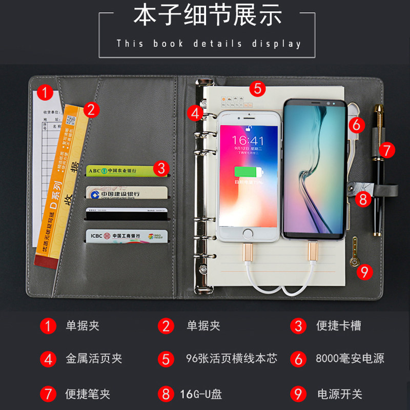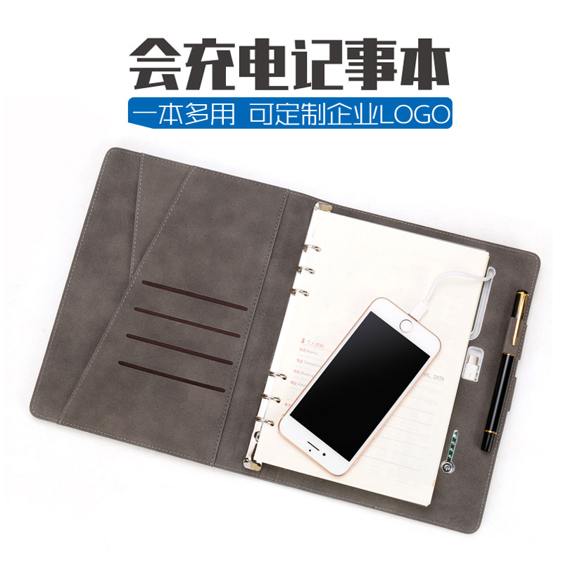 📚 多功能A5充电笔记本子U盘电源记事本礼品活页本 带充电宝的笔记本礼品本公司办公用品工作电源本可定制LOGO