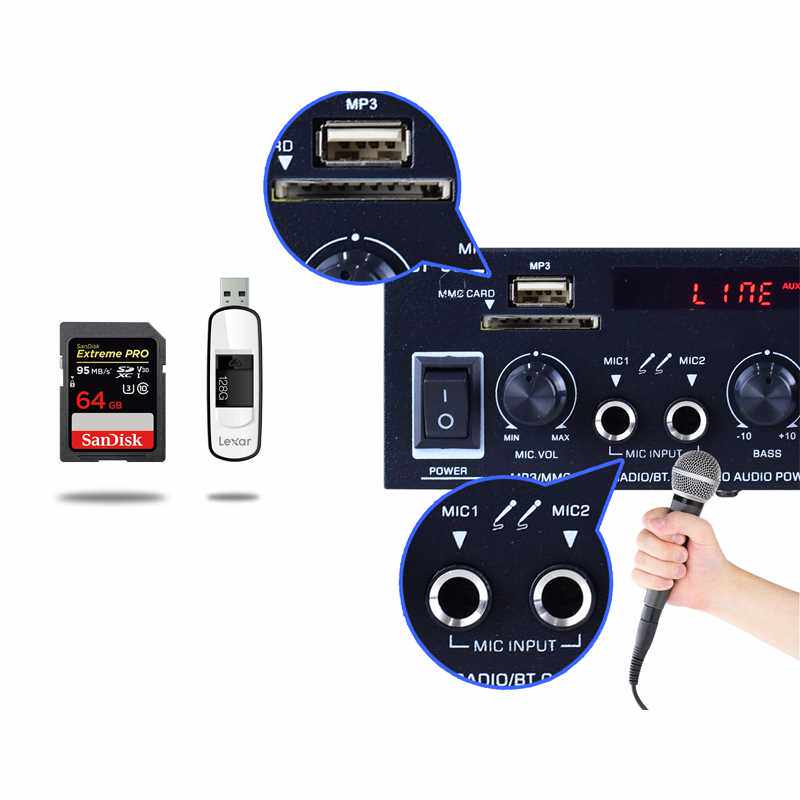 📚 Bluetooth-Compatible 2*60W FM Mp3 Player Audio Power Amplifi
