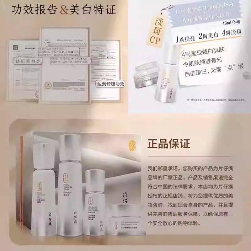 📚 片仔癀珍珠臻白淡斑礼盒补水提亮肤色精华液面霜亮肤水护肤品套装