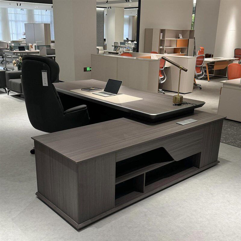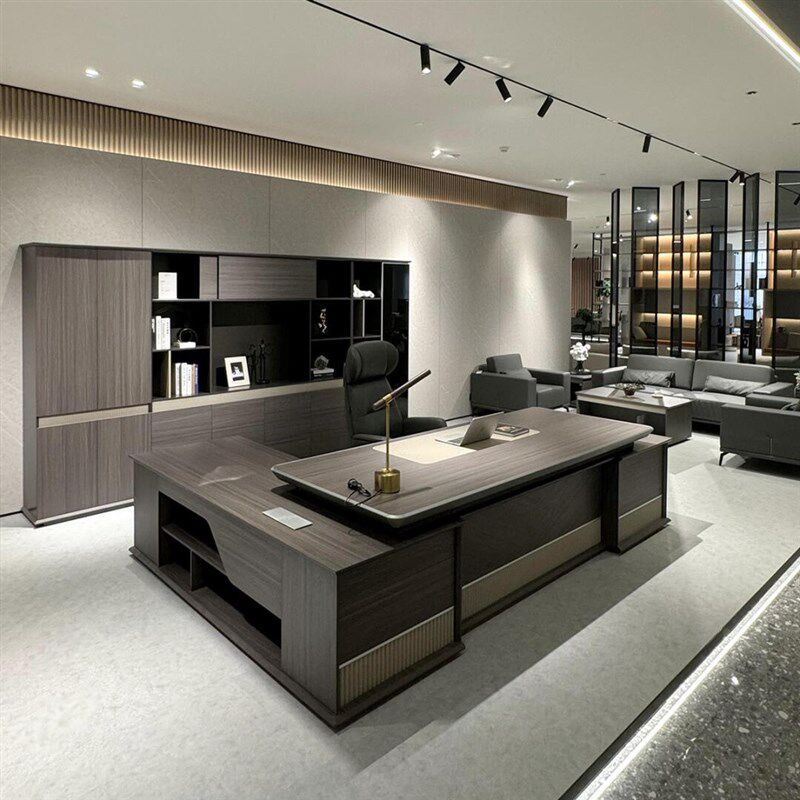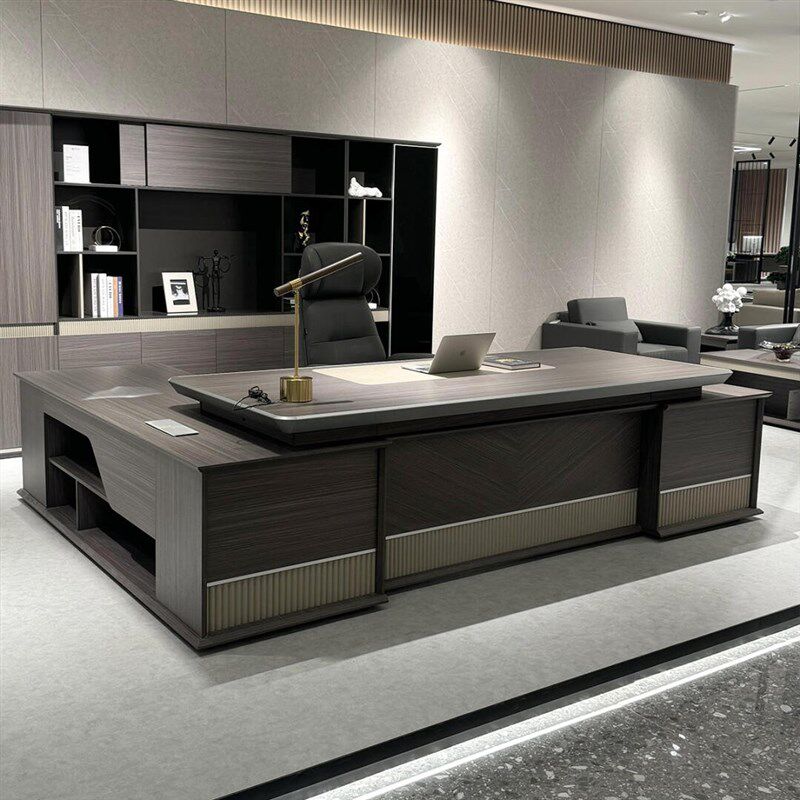 📚 2024新中式实木大班台禅意黑胡桃白蜡木主管桌酒店民宿办公室家具