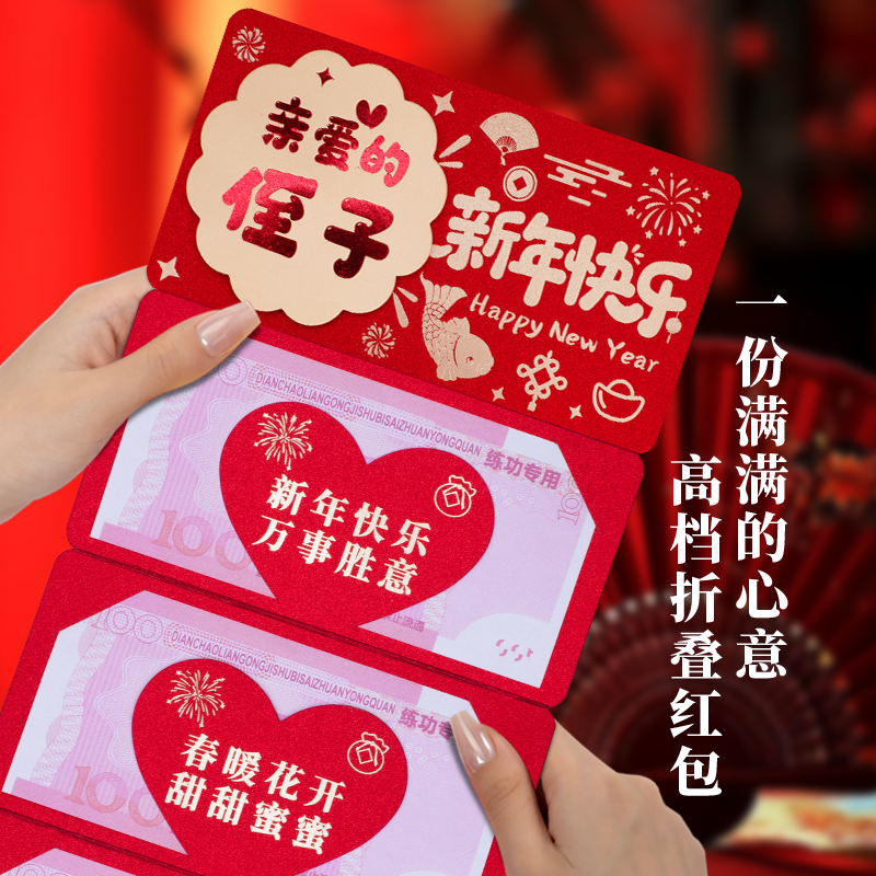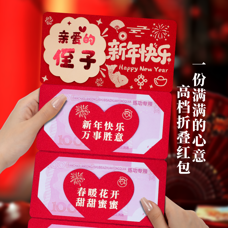 📚 侄子新年红包利是封父母长辈老公老婆马年新款创意折叠红包祝福语