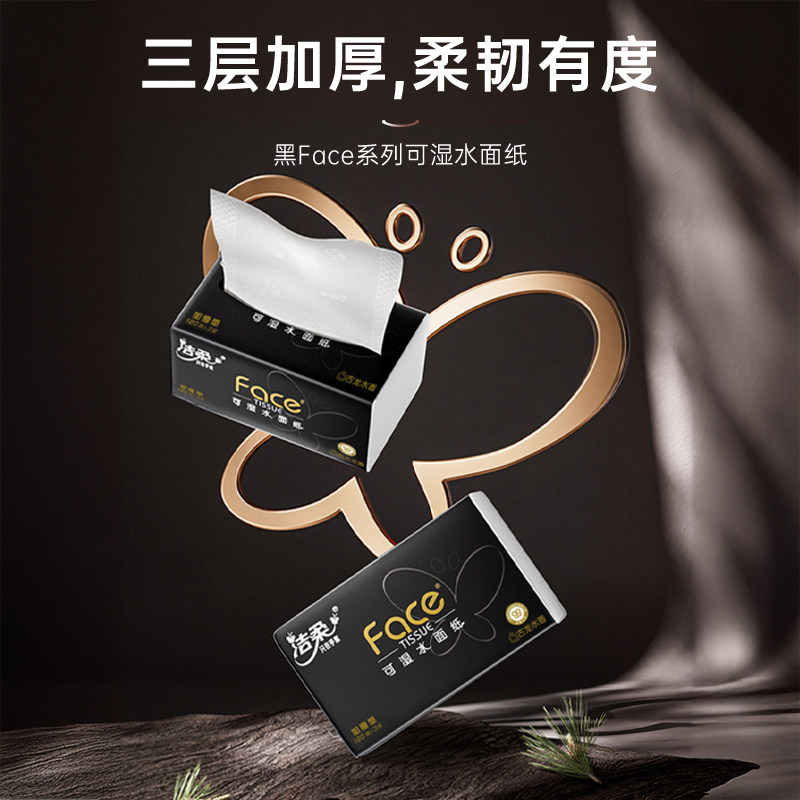 📚 洁柔抽纸黑Face可湿水面纸3层120抽6包古龙水香面巾纸
