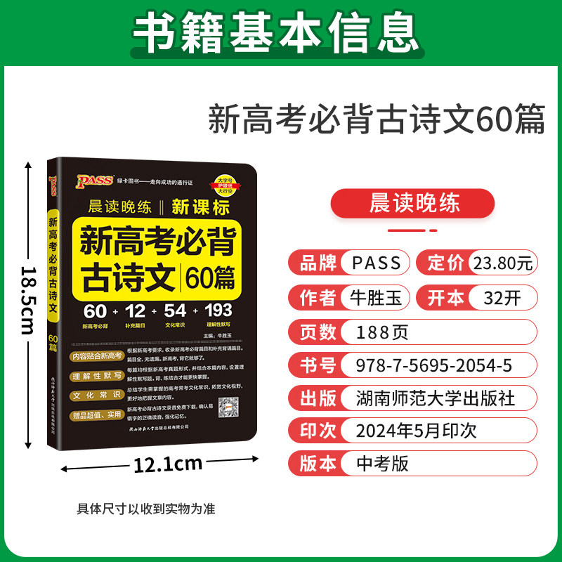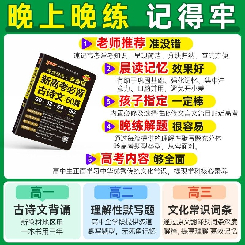 📚 2025晨读晚练高考必背古诗文60篇75篇72篇64篇高中必背古诗文古诗词理解性默写高一二三古代文化常识高中语文教辅资料书PASS绿卡