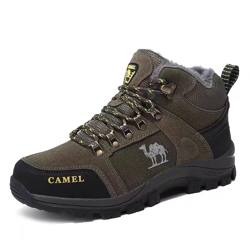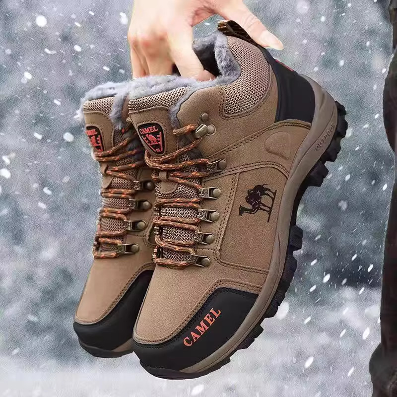 📚 骆驼男鞋冬季保暖加绒棉鞋男士真皮防寒雪地靴运动户外高帮登山鞋