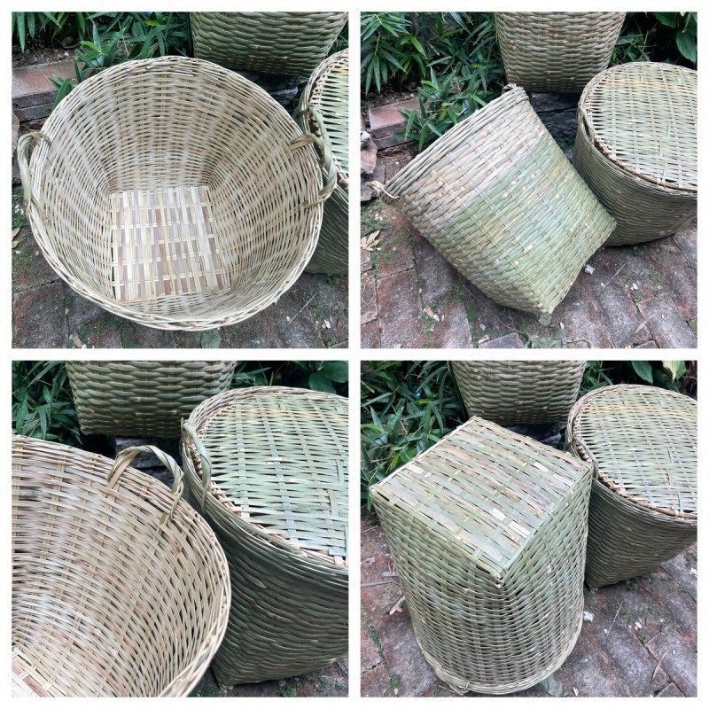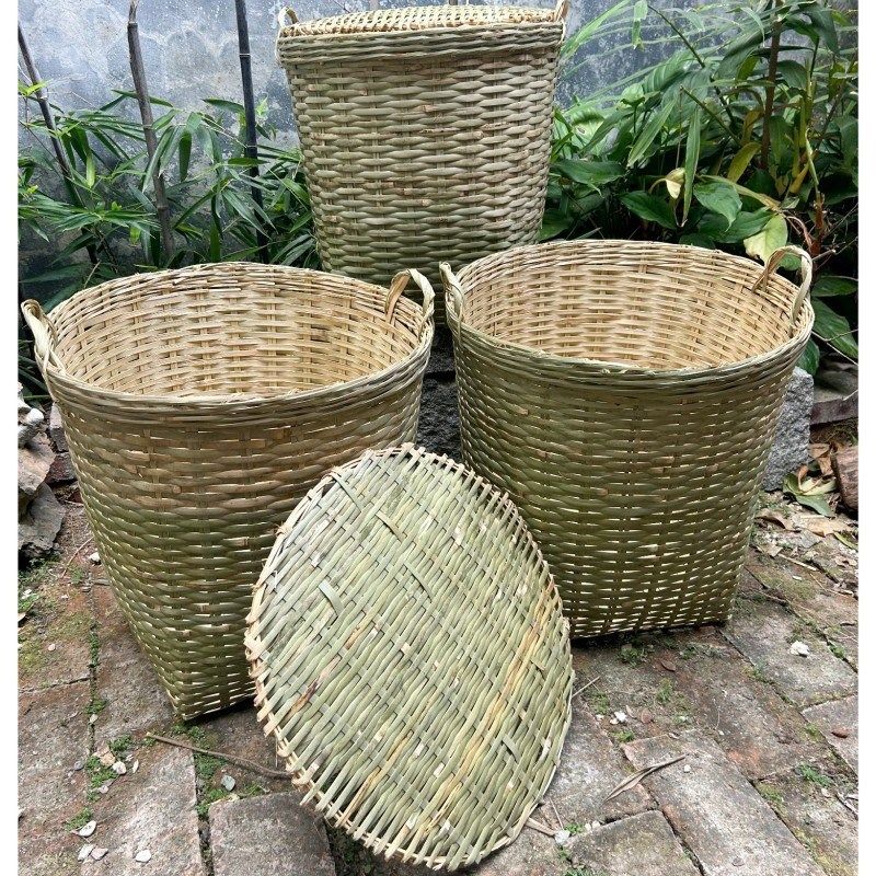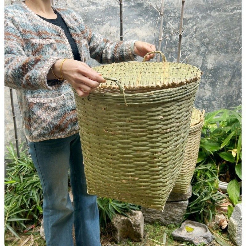 📚 竹制品手工编织茶叶采摘竹篓竹编带盖箩筐储物水果粮食收纳竹篮
