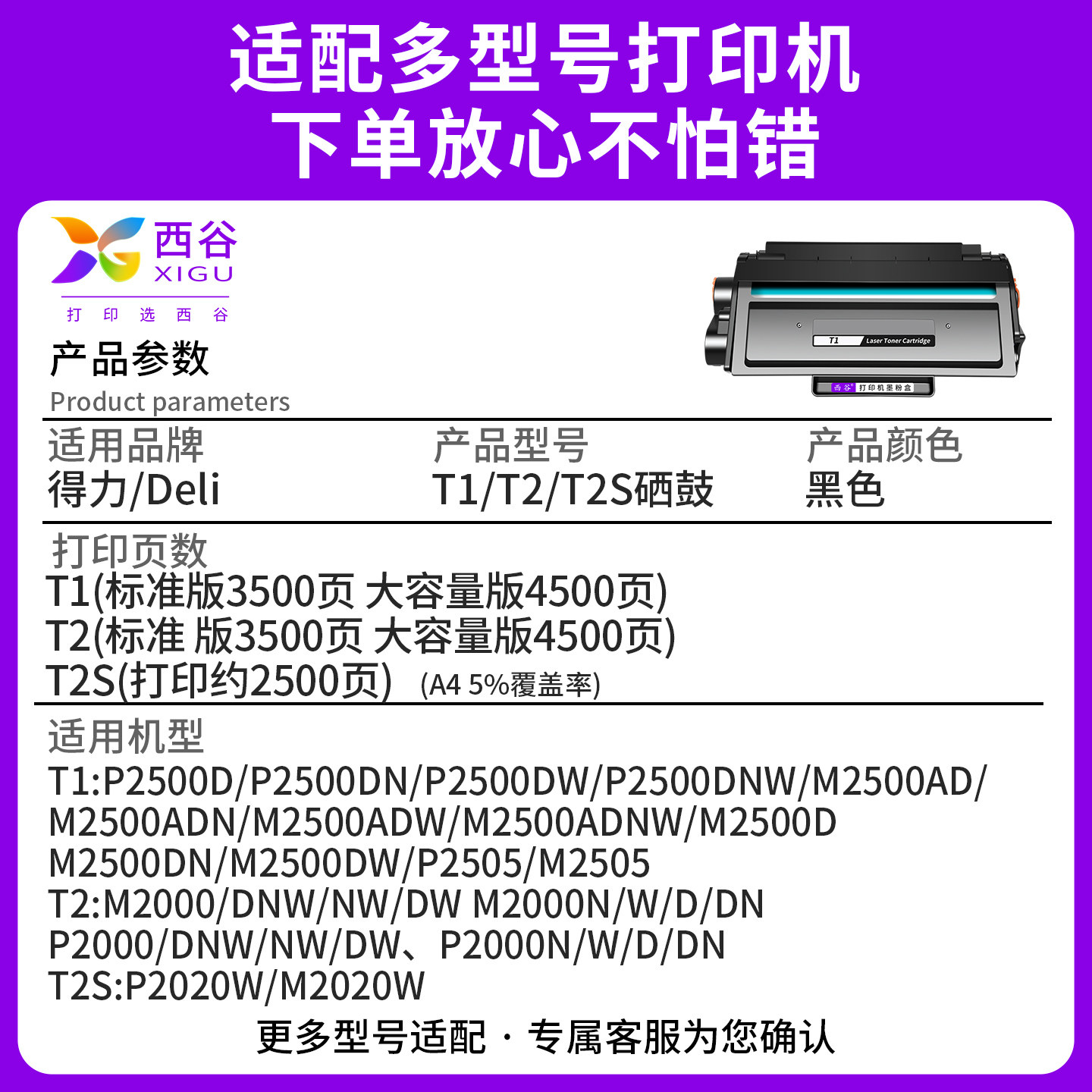 📚 适用得力m2000dw硒鼓T1 T2打印机m2500d m2020w P2500dn粉盒P2020dnw墨盒p2000dw dn adw adnw adn ad nw t2s