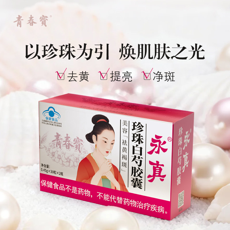 📚 青春宝永真牌珍珠白芍胶囊30粒*2瓶祛黄褐斑新版美容胶囊全新效期