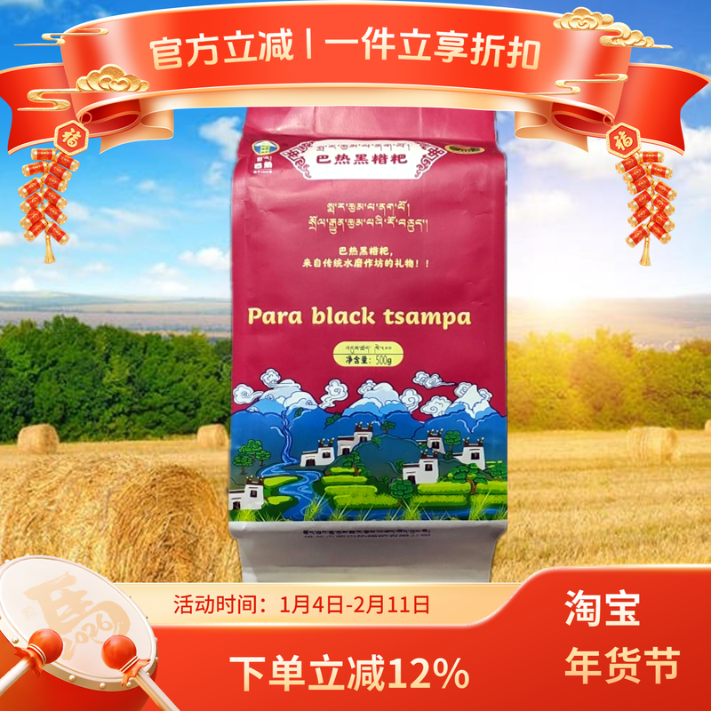 📚 西藏巴热黑糌粑堆龙古荣巴热黑糌粑黑青稞粉熟粉即食500g真空包邮