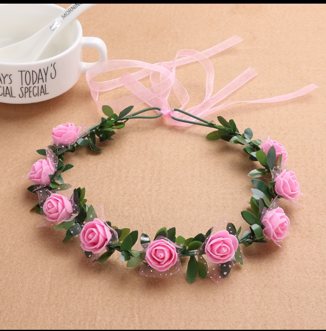 📚 花环头饰皇冠发环新娘伴娘婚纱写真成人儿童头环手环海边摄影热卖