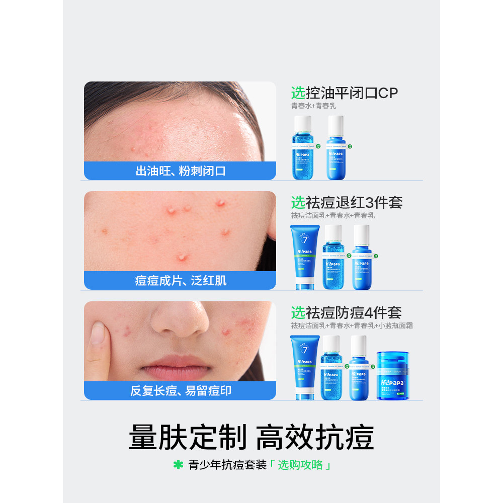 📚 海龟爸爸青少年祛痘水乳护肤套装男学生青春期女孩控油儿童洗面奶