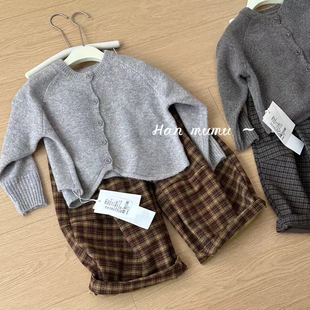 📚 110-150毛衣男童女童秋款外套单排扣针织衫纯棉毛衣圆领格子裤潮