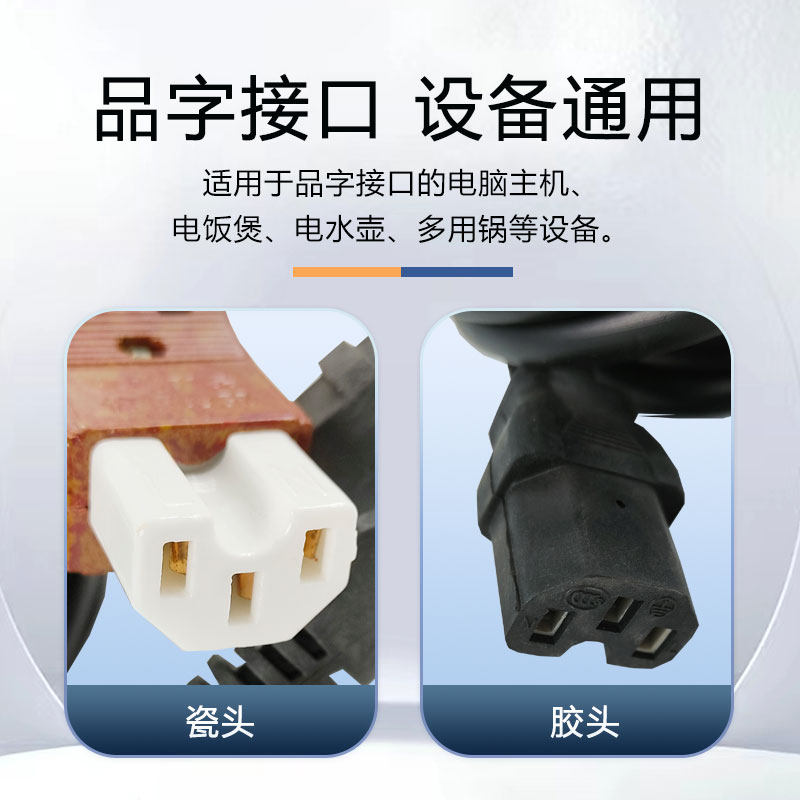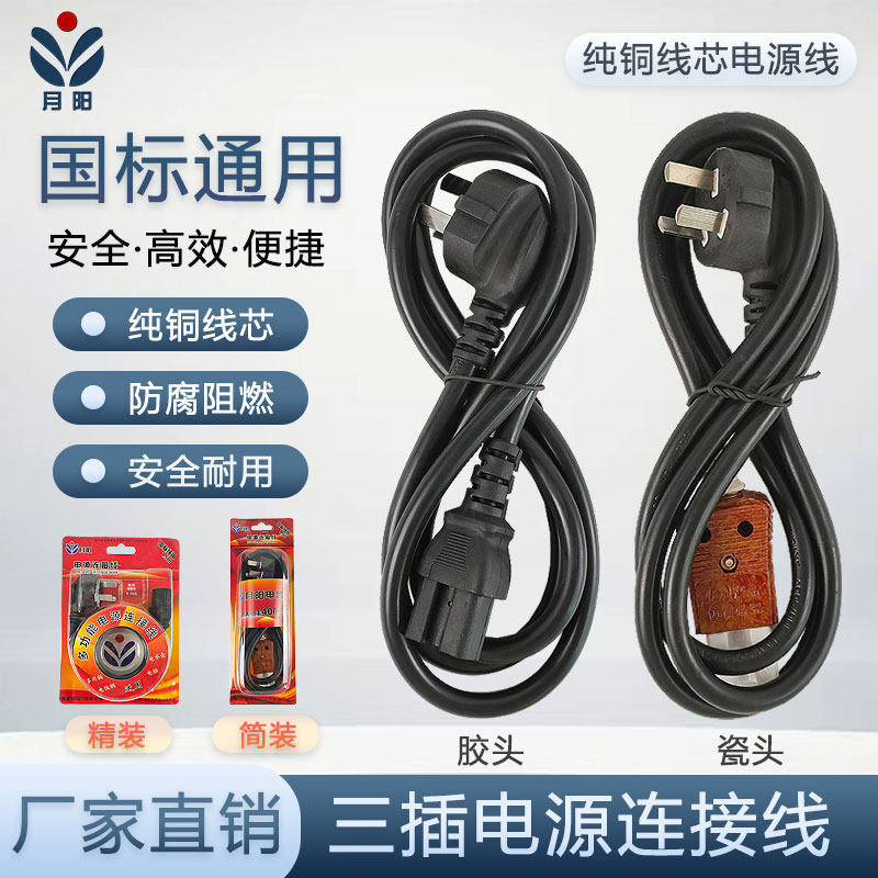📚 月阳纯铜通用三孔电热锅线电热水壶连接线电饭煲电源线连接线