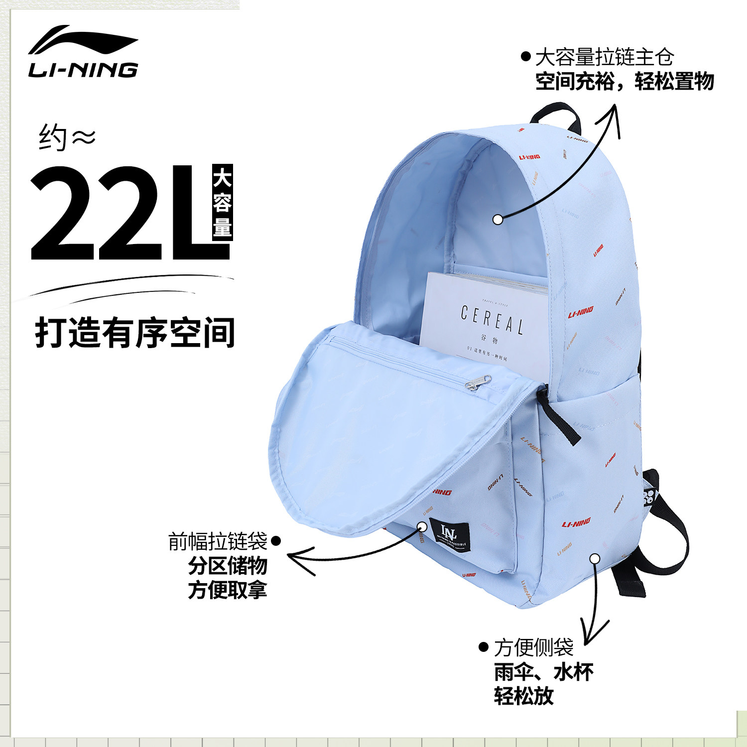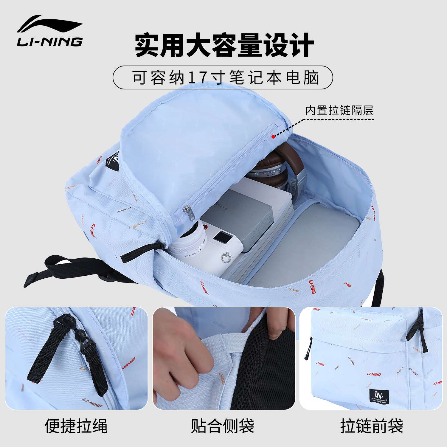 📚 李宁书包女高中生通勤双肩包男初中大学生轻便旅行大容量电脑背包