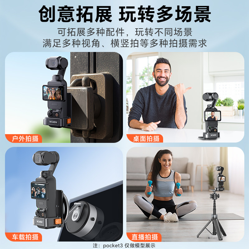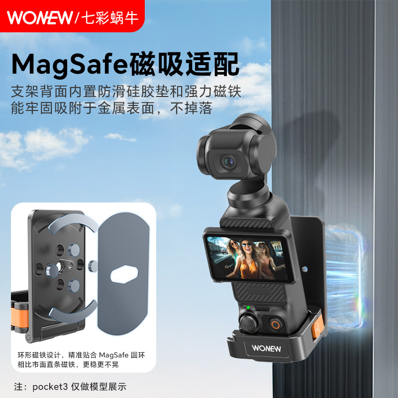 📚 wonew七彩蜗牛适用大疆Pocket3vlog拍摄磁吸拓展桌面底座自拍手机支架迷你便携吸盘真空磁吸自拍杆手持三脚架
