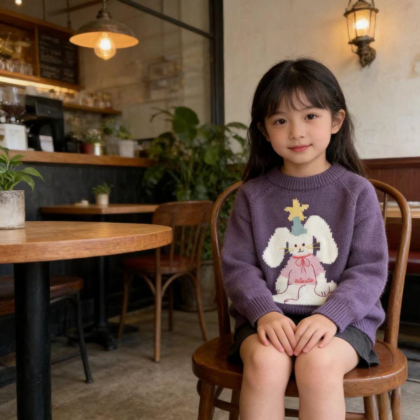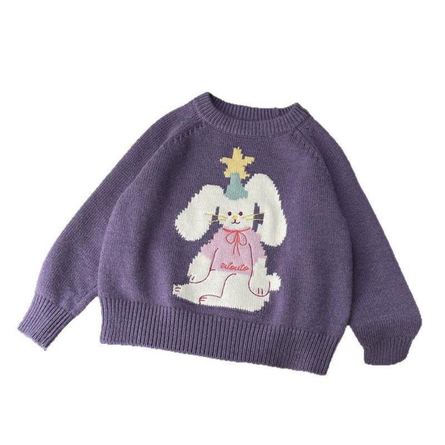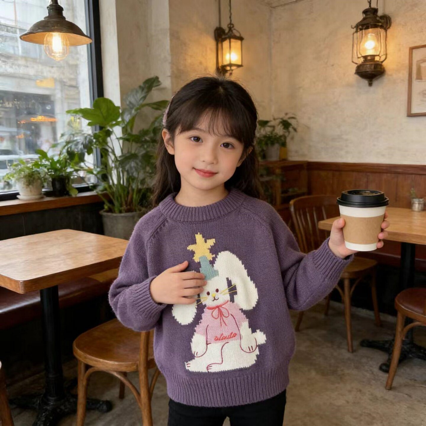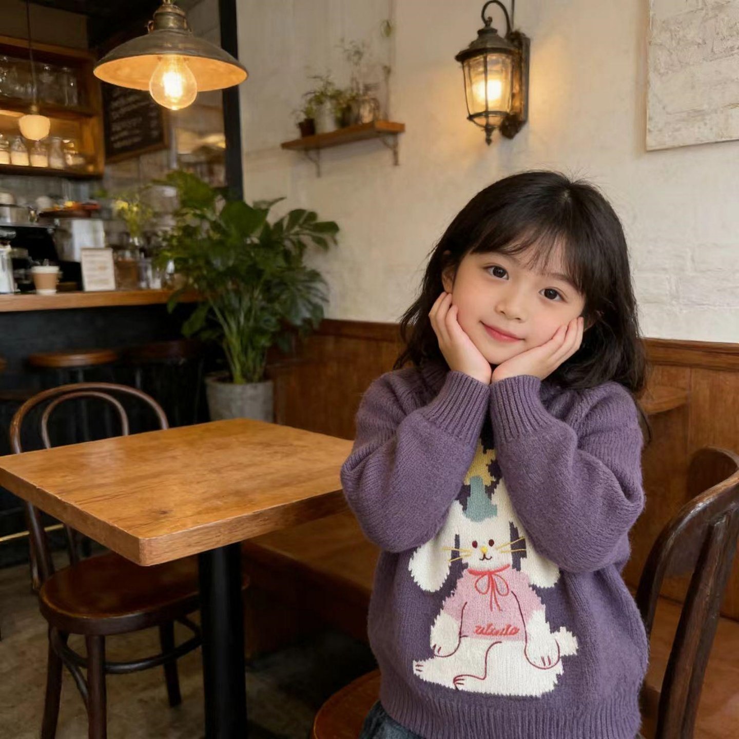 📚 女童卡通兔子毛衣2025秋冬季新款韩版洋气儿童百搭加厚针织衫上衣