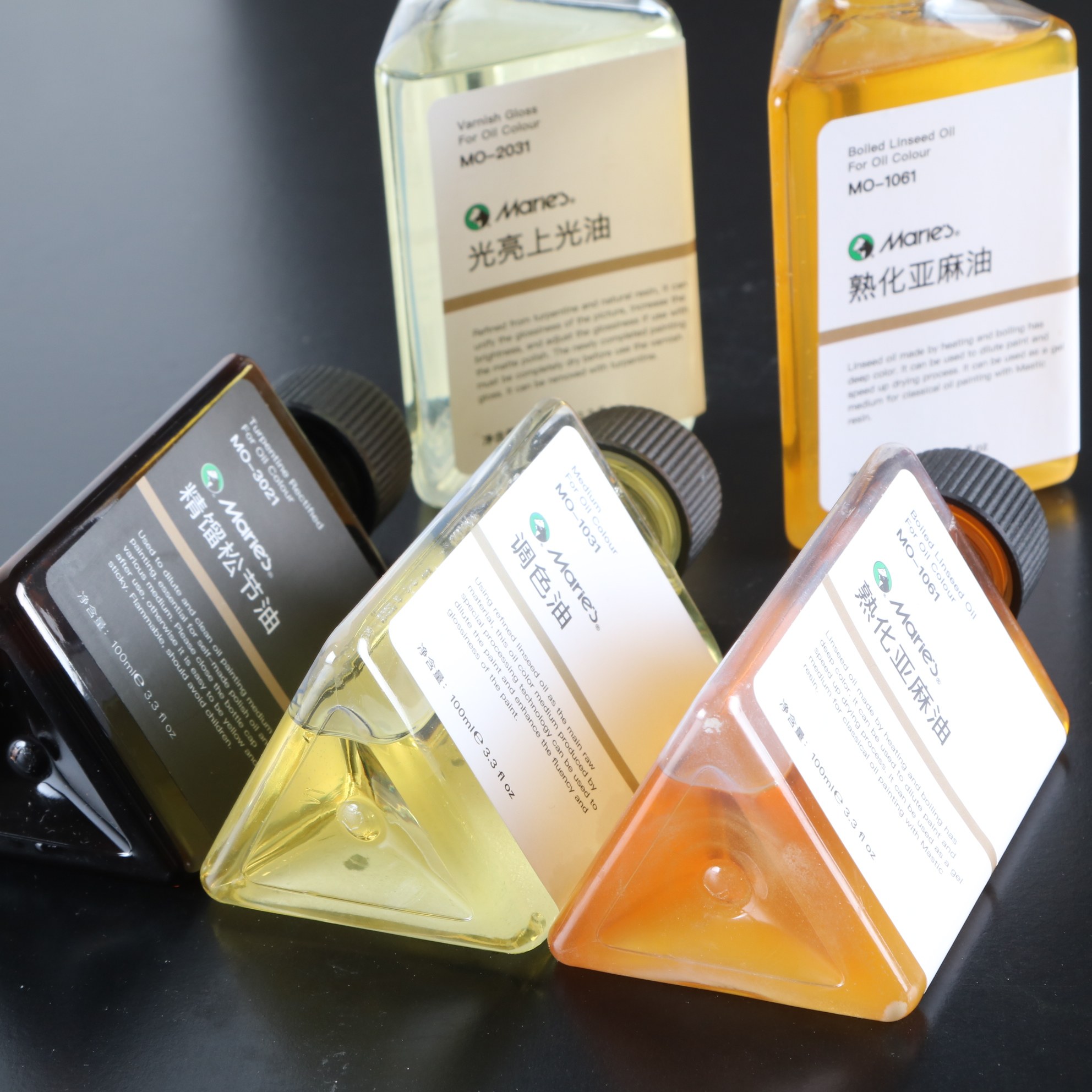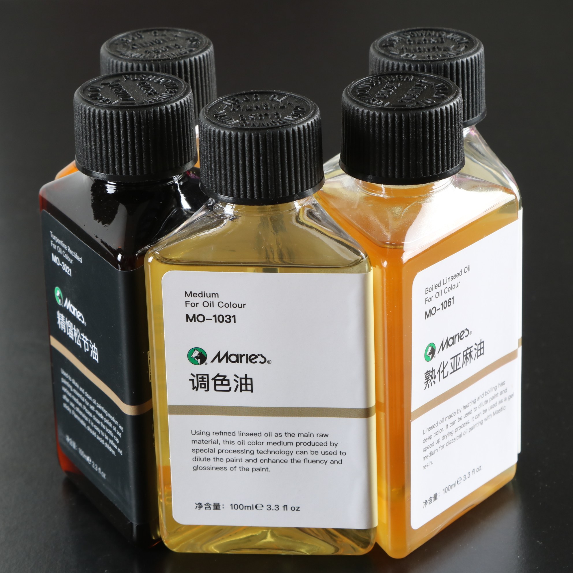 📚 马利油画媒介调色油亚麻油松节油上光油熟化亚麻油100ML装油画颜料稀释剂500ML