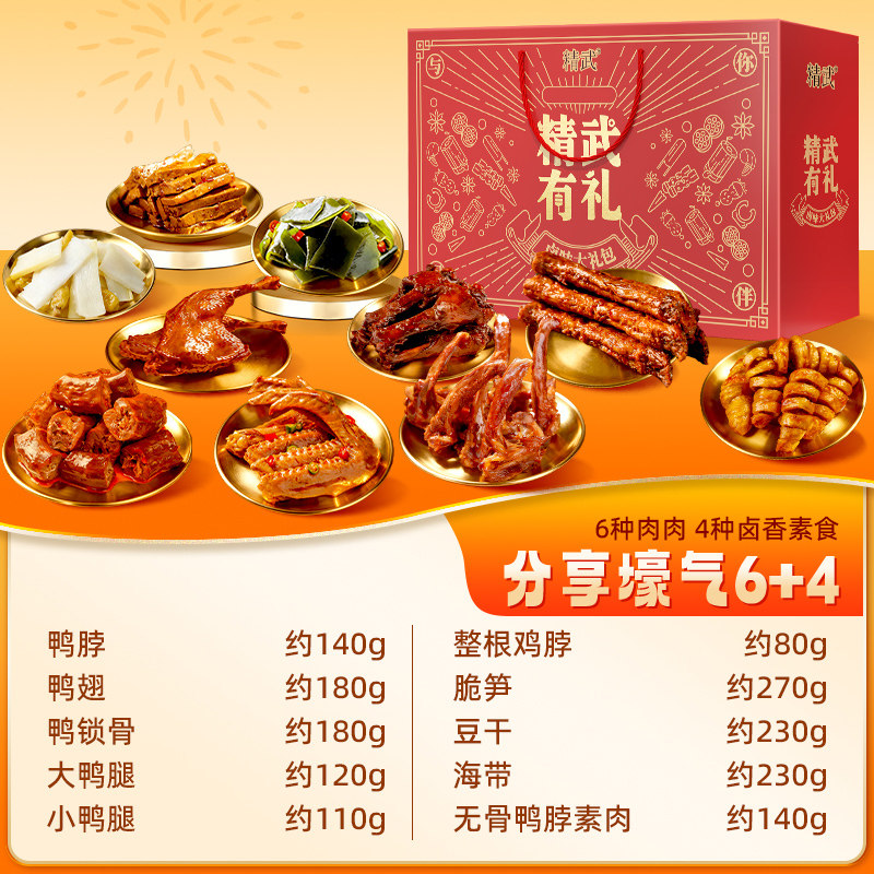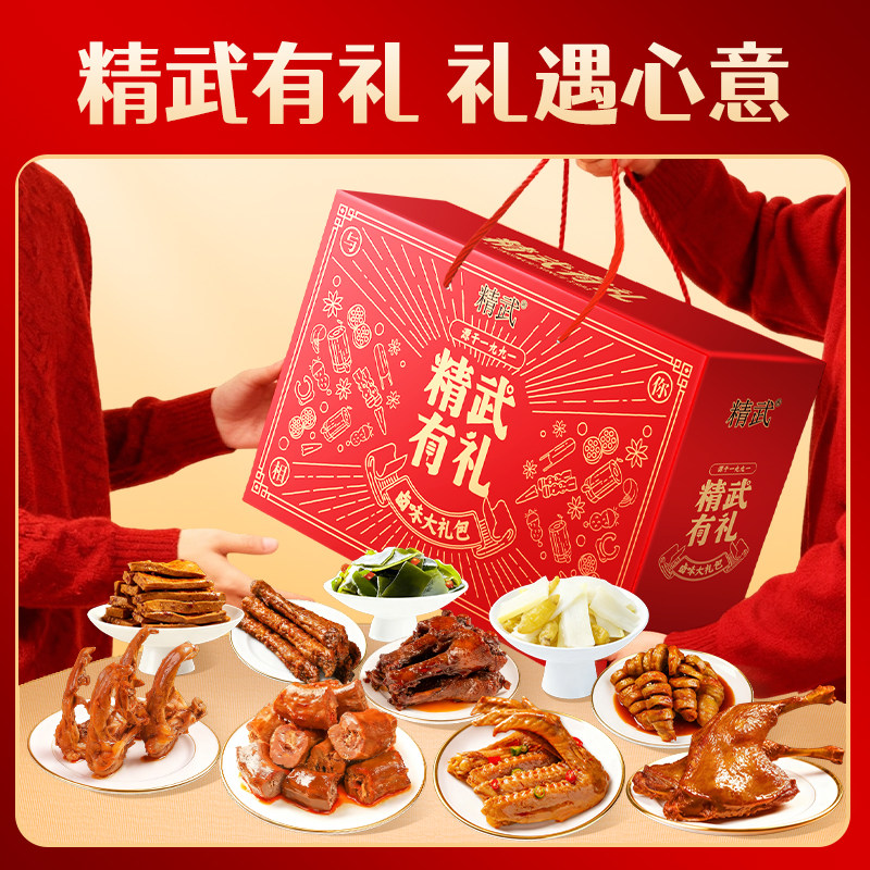 📚 精武卤味荤素零食年货礼盒1680gx2盒鸭脖鸭掌大鸭腿过年送礼