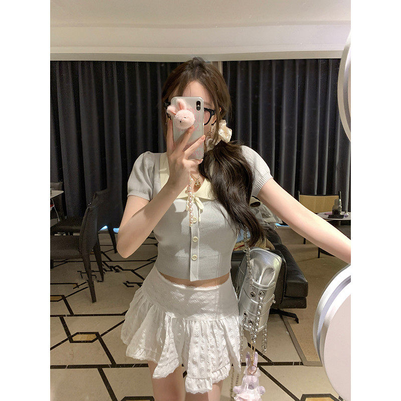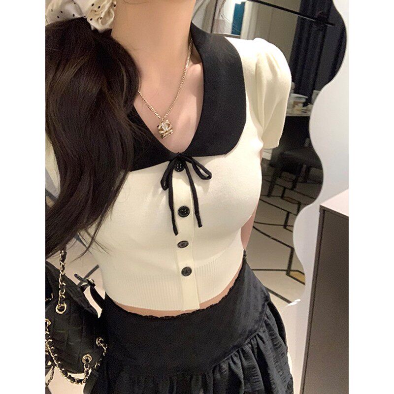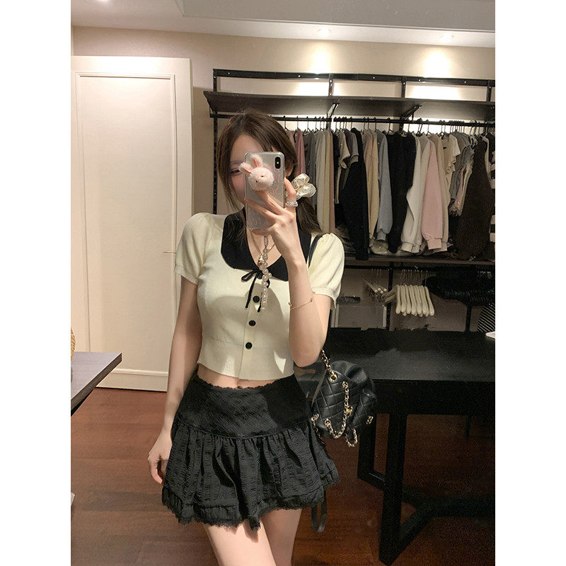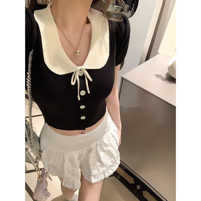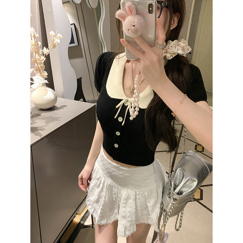 📚 小众法式针织短袖上衣女夏款修身2026新款翻领polo衫时尚上衣ins
