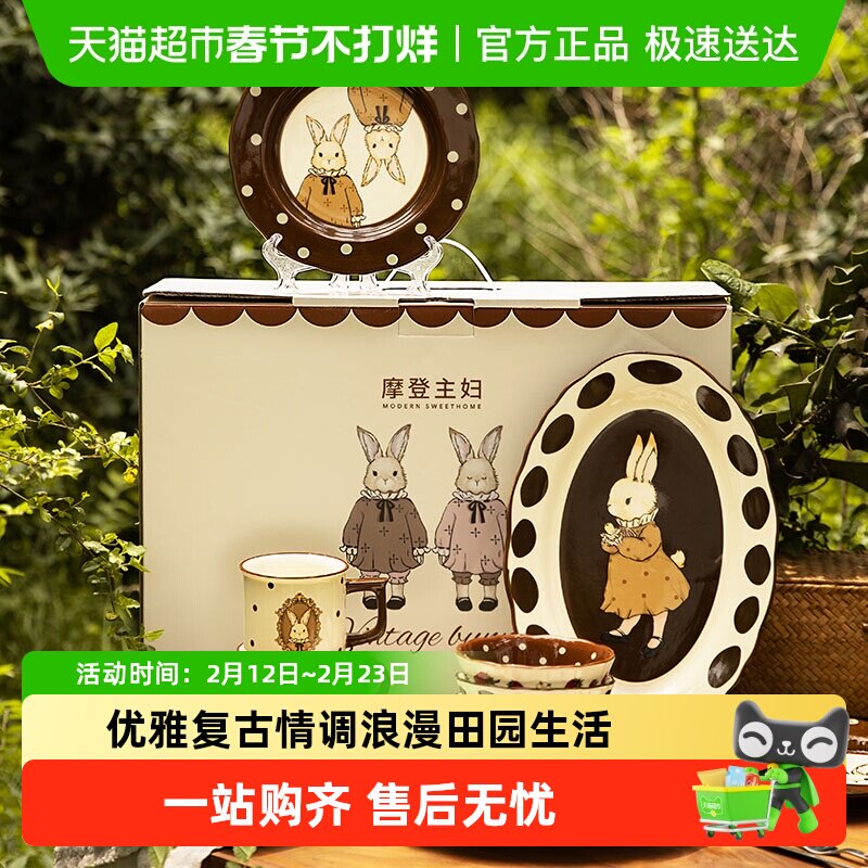 📚 摩登主妇原创复古赫拉兔礼盒套装陶瓷餐具碗盘碟家用可爱米饭碗