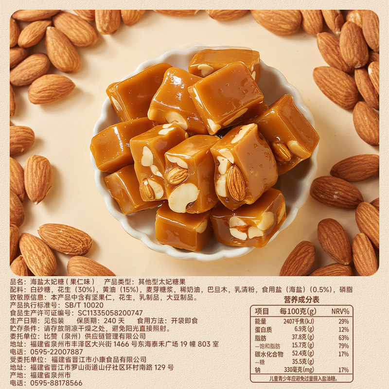 📚 比比赞海盐太妃糖巴旦木花生酥糖果喜糖硬糖休闲零食小吃网红爆款