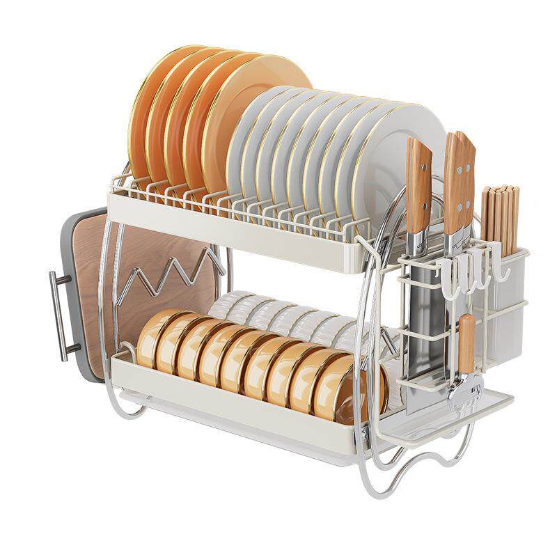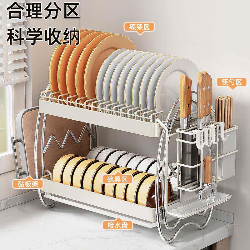 📚 双沥水层白色沥碗水碗碟架抽拉盘DW90287碟收纳架厨房碗筷收纳盒