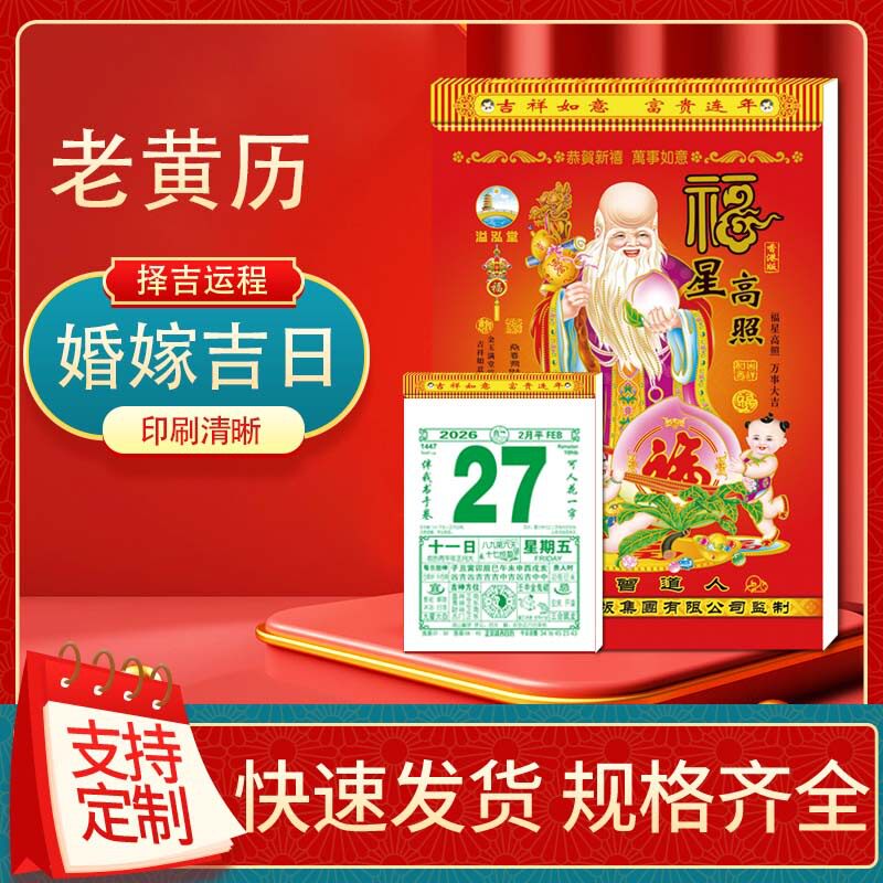 📚 2026年16开32开8开老皇历老黄历可看彩票皇历广告黄道日历定制