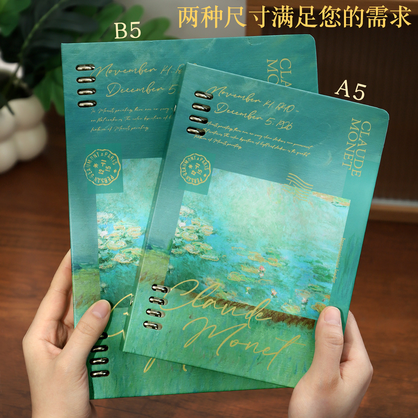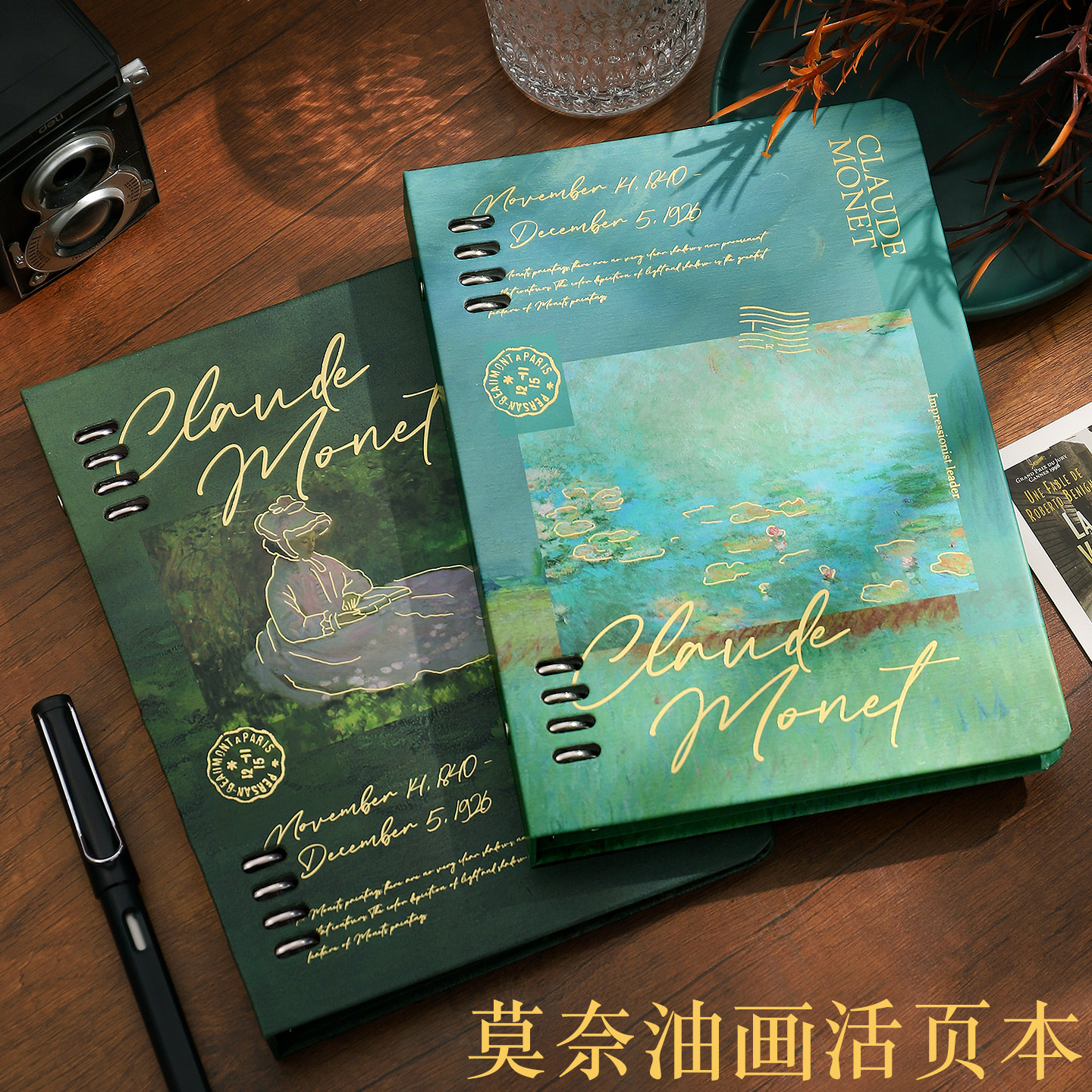 📚 莫奈油画活页本b5可拆卸笔记本子ins风高颜值原创插画彩页手帐本记事本活页纸替芯a5文艺复古纸质活页夹外壳