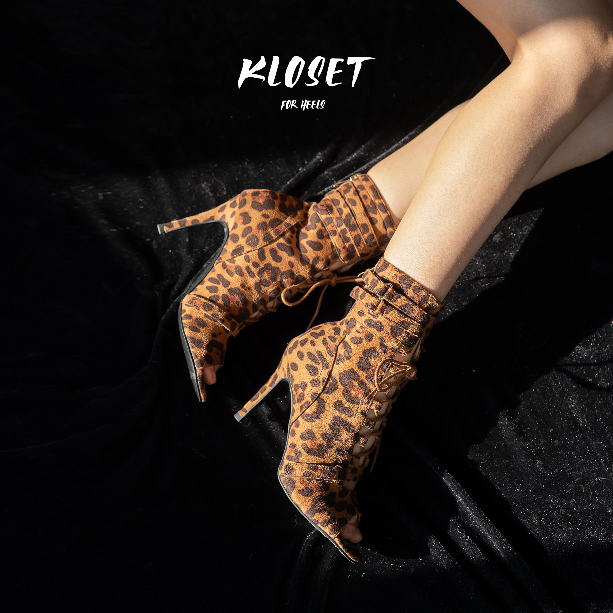 📚 原创豹纹性感爵士专用舞蹈鞋系带短筒高跟鞋舞鞋软底短靴heels女