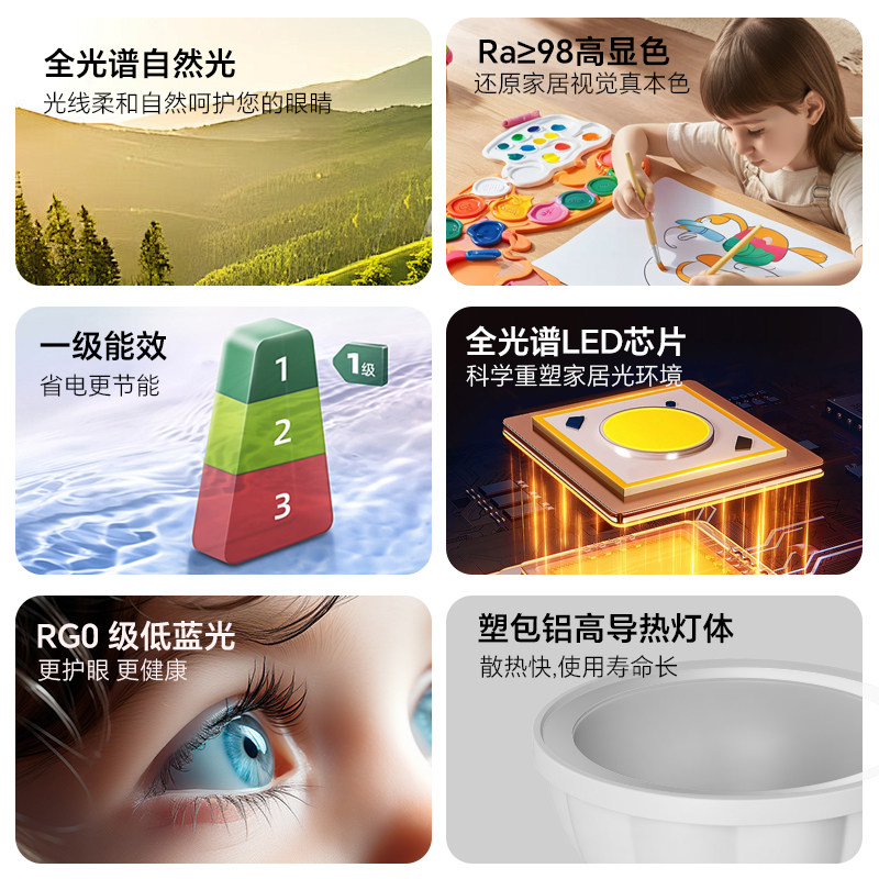 📚 全光谱护眼led灯泡E27螺口家用吊灯节能灯超亮大功率一级能效球泡