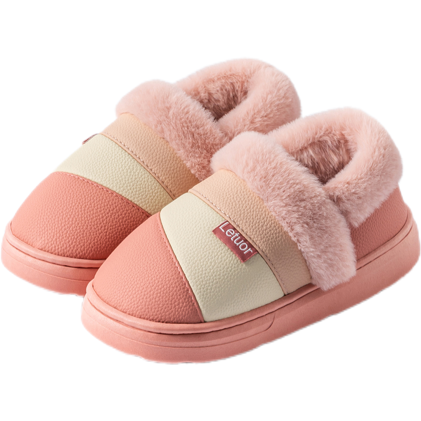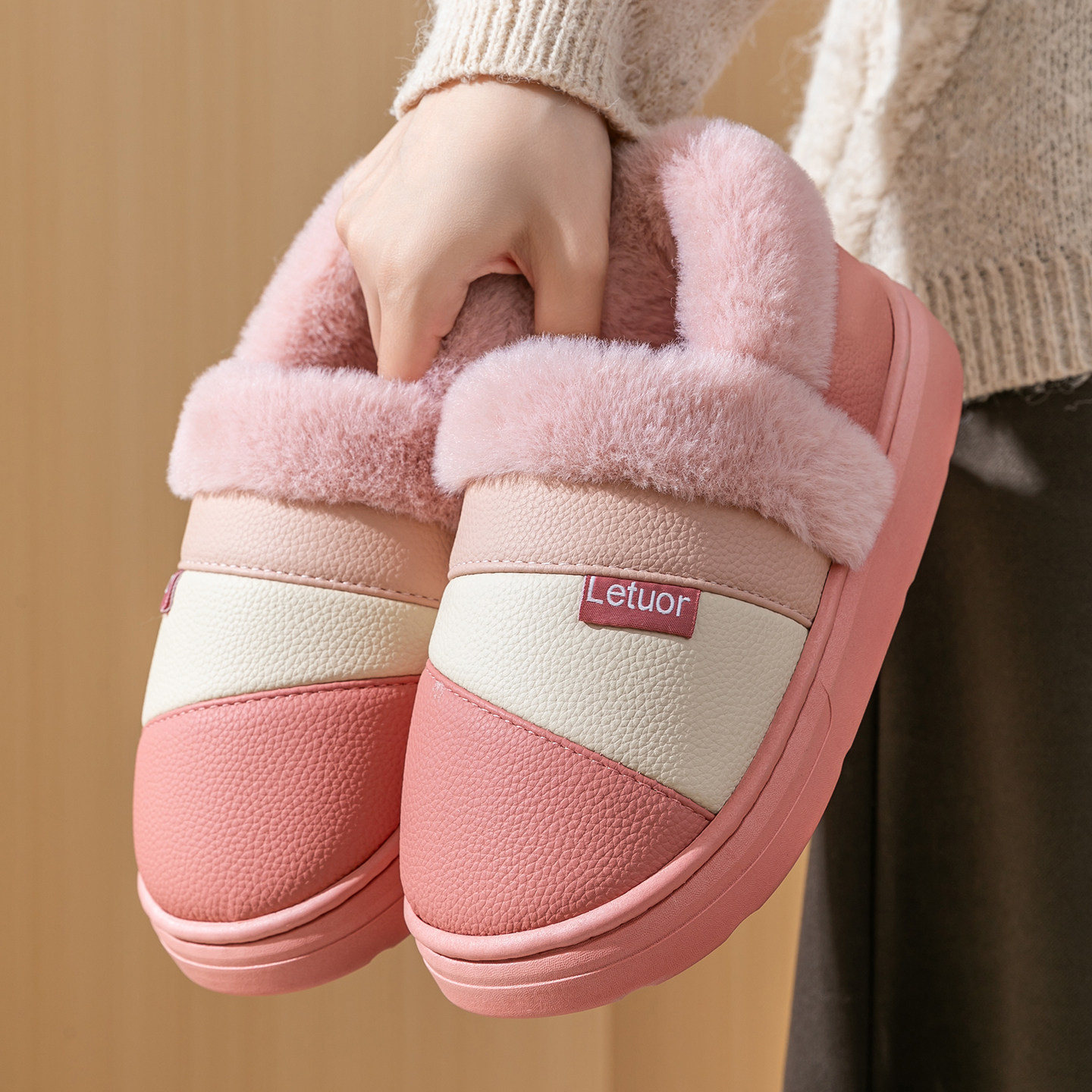📚 乐拖皮面包跟棉拖鞋女款冬季室内家居家用男防滑保暖棉鞋防水外穿