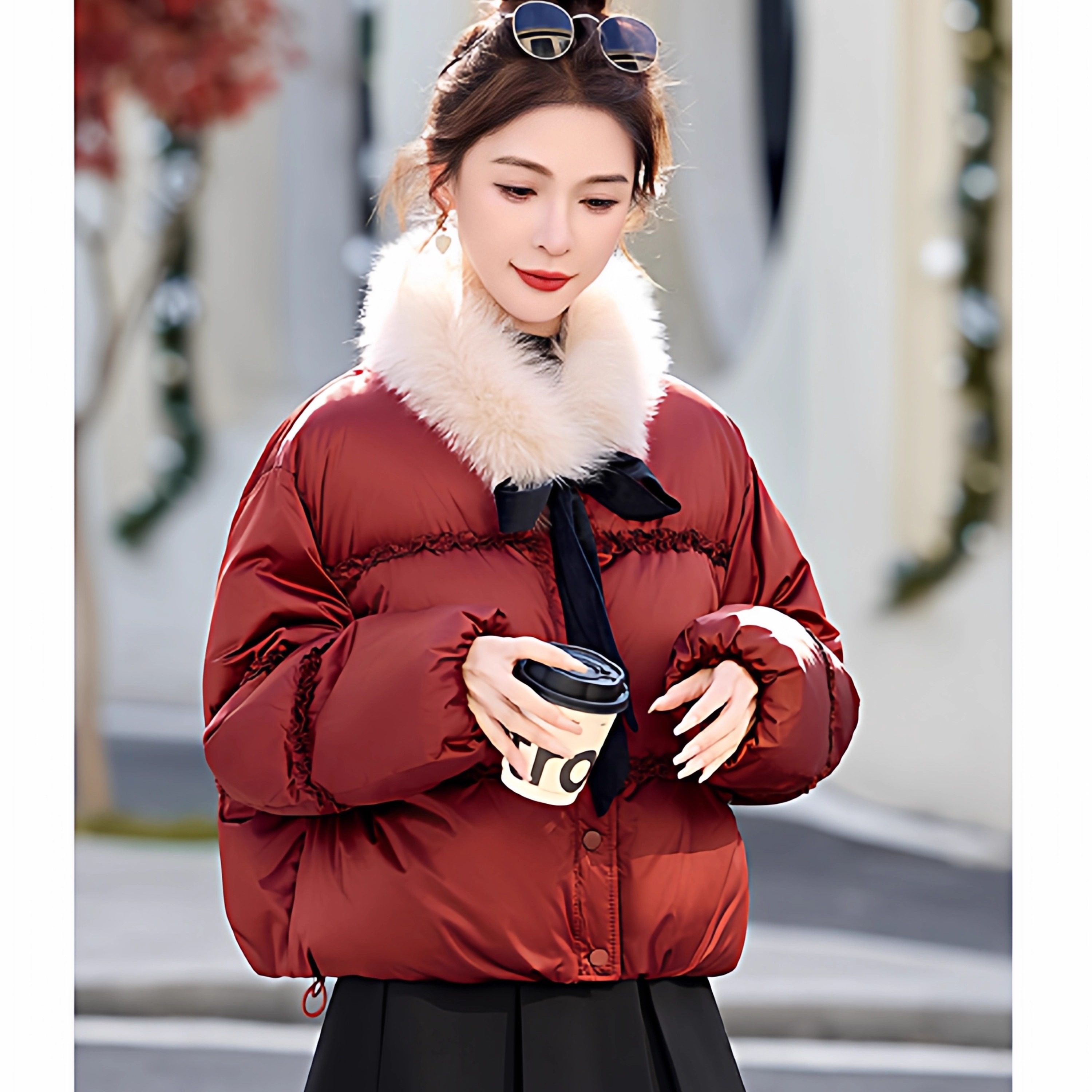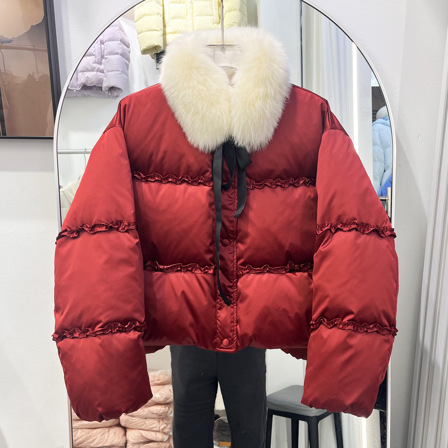 🔥"新国标90白鸭绒新年圣诞红色狐狸毛真毛领女短款羽绒服!让冬日温暖如春💓"