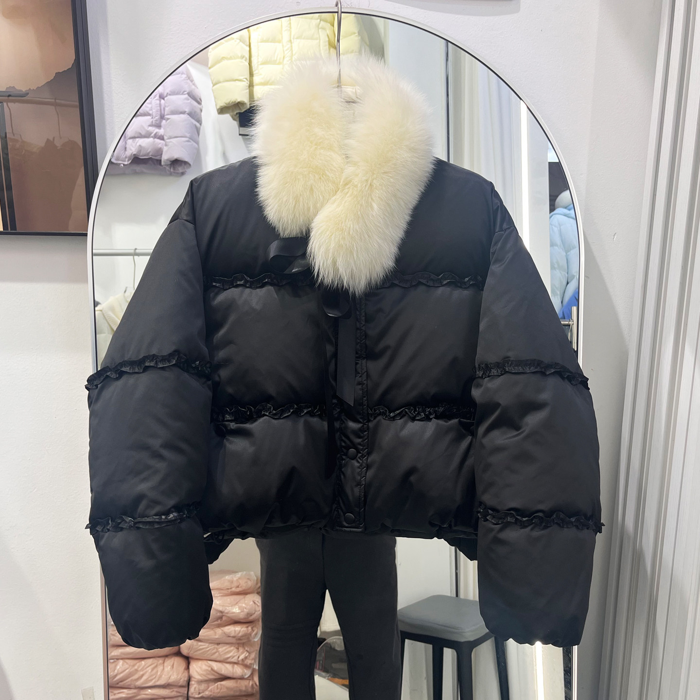 鸭绒毛领短款小个子国标