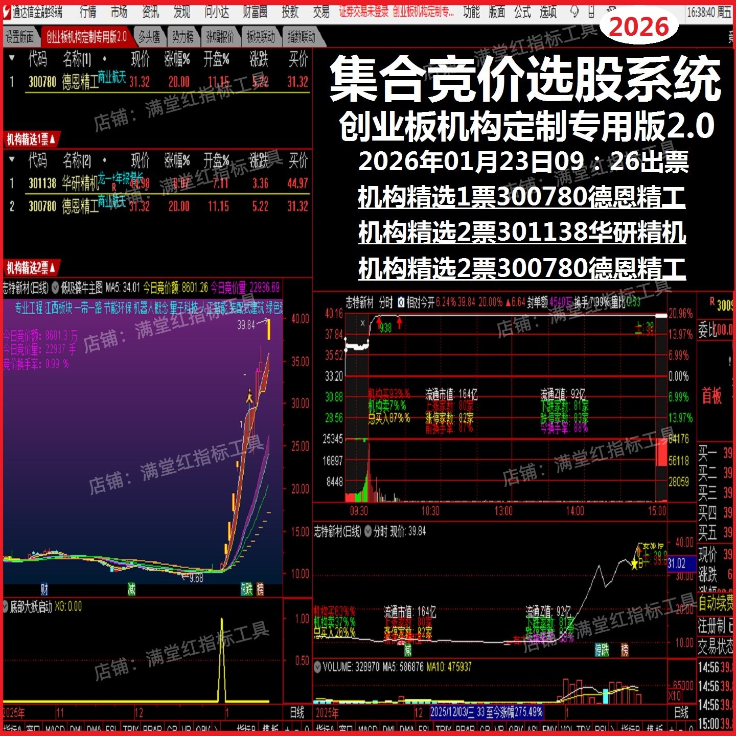 📚 2026创业板机构2.0集合竞价抓涨停热点板块打板技术强势选股系统