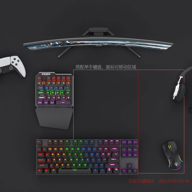 📚 英克尔单手机械键盘刺激战场游戏青轴小型usb便携迷你左手吃鸡用