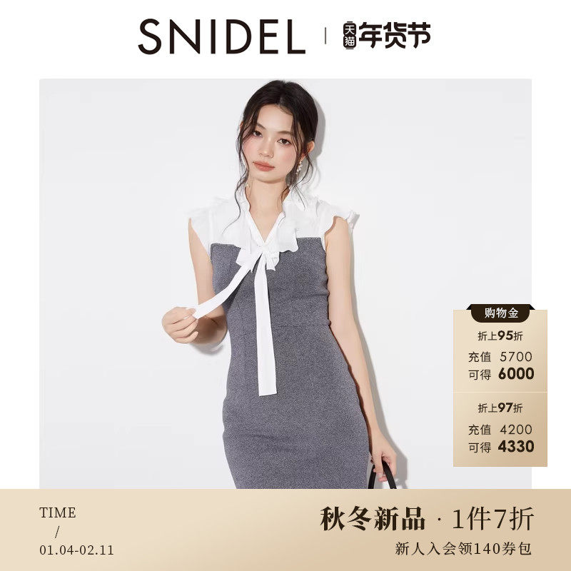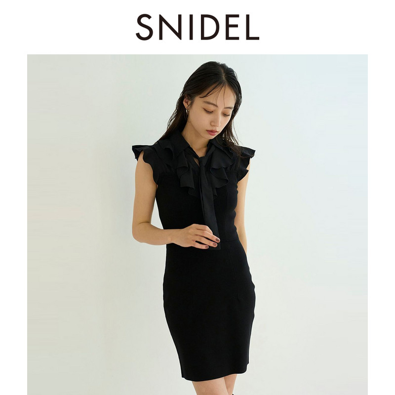 📚 SNIDEL2025秋冬新品气质荷叶领小飞袖领结针织连衣裙SWNO254253