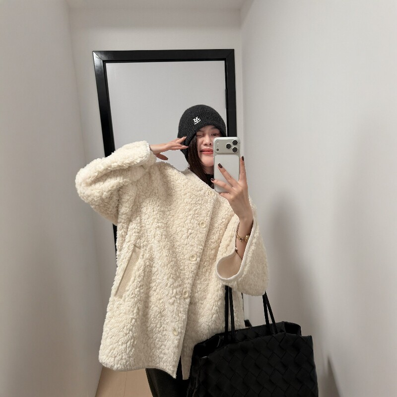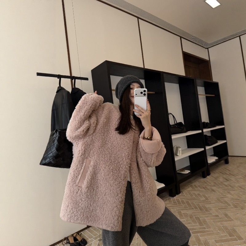📚 摩登197羊羔毛中长款大衣女2025冬新款加厚保暖皮毛一体外套 H162