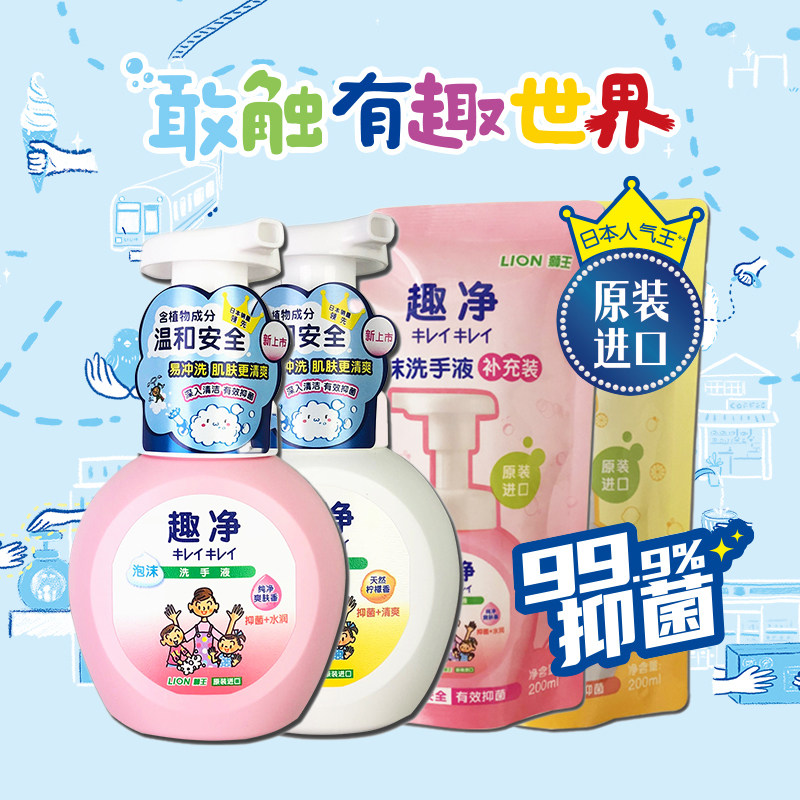 📚 狮王趣净泡沫抑菌洗手液纯净爽肤香全家儿童适用洗手液补充装