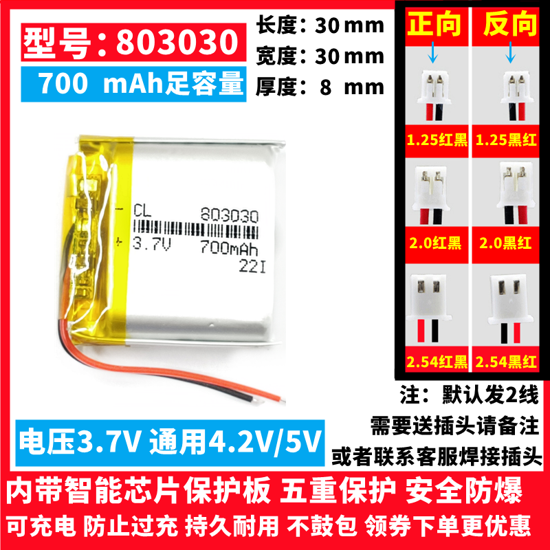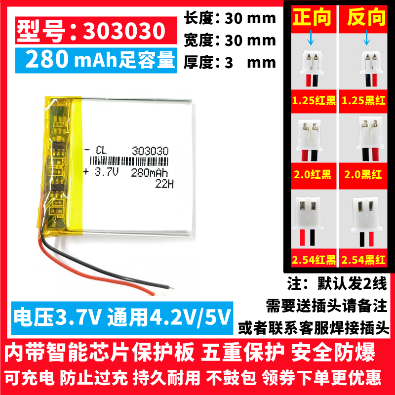 📚 3.7V锂电池小103030/303030/403030/503030/603030/803030/902830