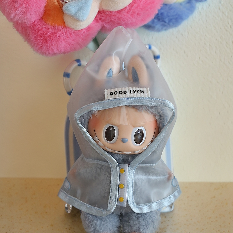 📚 17cm拉布布娃衣一二代马卡龙搪胶盲盒挂件衣服泡泡玛特labubu雨衣