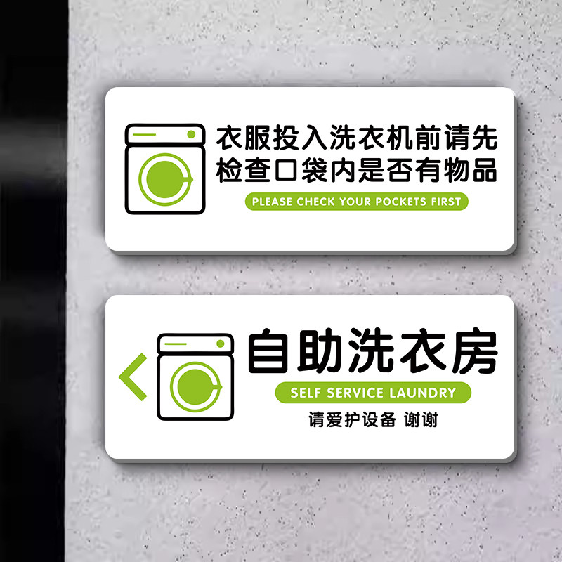📚 自助洗衣房标语牌墙贴纸洗衣机烘干机标识牌民宿学校宿舍温馨提示牌晾衣间酒店公寓内裤袜子请勿机洗公共提示