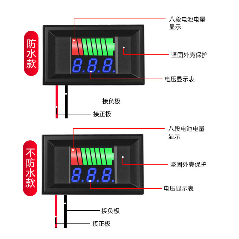 📚 电动车电瓶电量显示器仪表精准电瓶车数显电压表防水锂电池显示表
