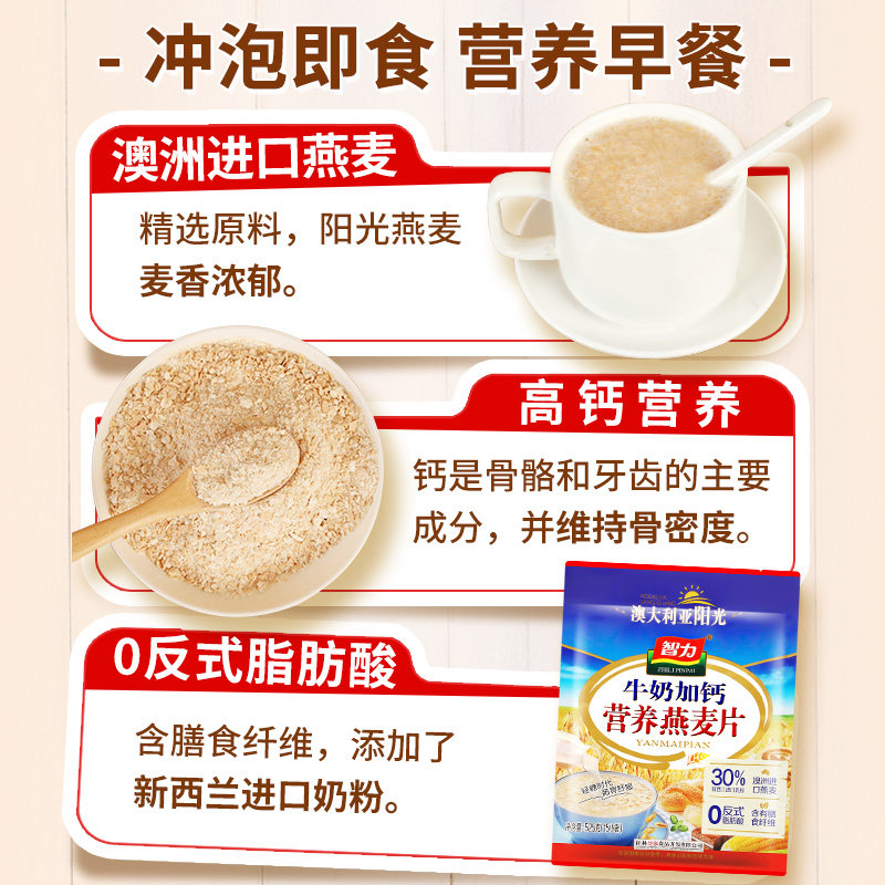 📚 智力燕麦片官方旗舰店同款正品牛奶加钙高钙麦片营养早餐冲饮即食