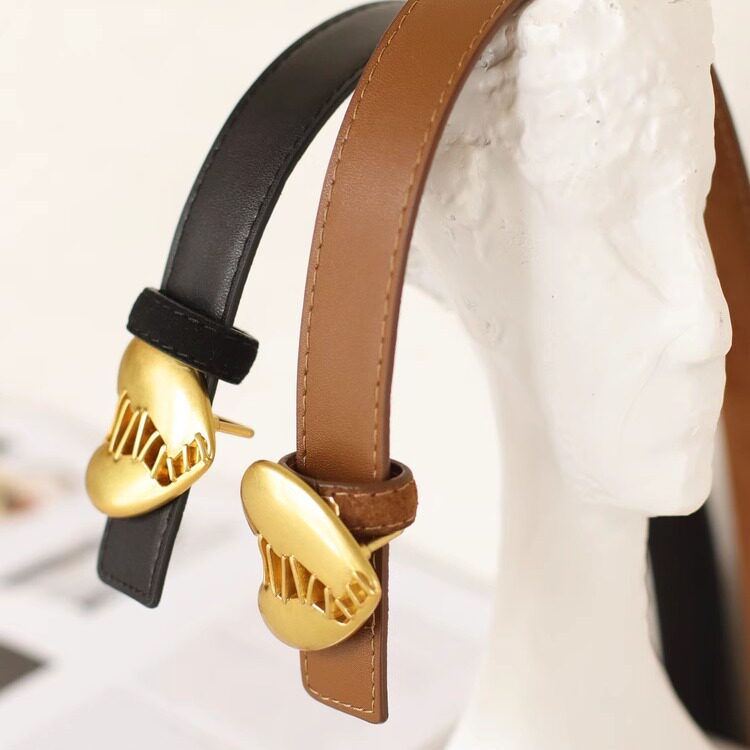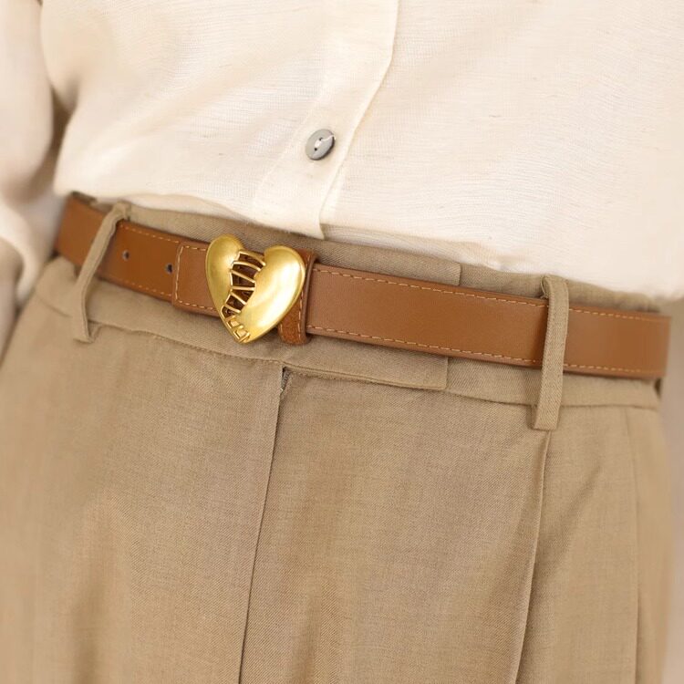📚 复古麂皮光面双面可用设计款爱心金扣腰带头层牛皮时髦精致腰封
