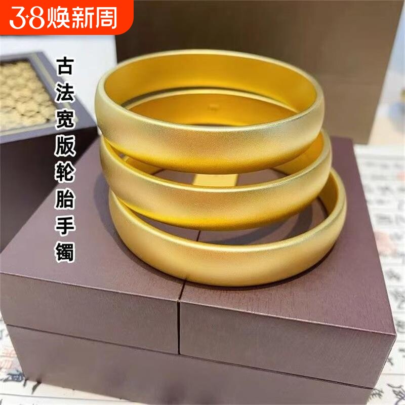 📚 实心不掉色沙金古法越南轮胎镯子泥鳅背款铜合金手镯宽版圈口黄铜