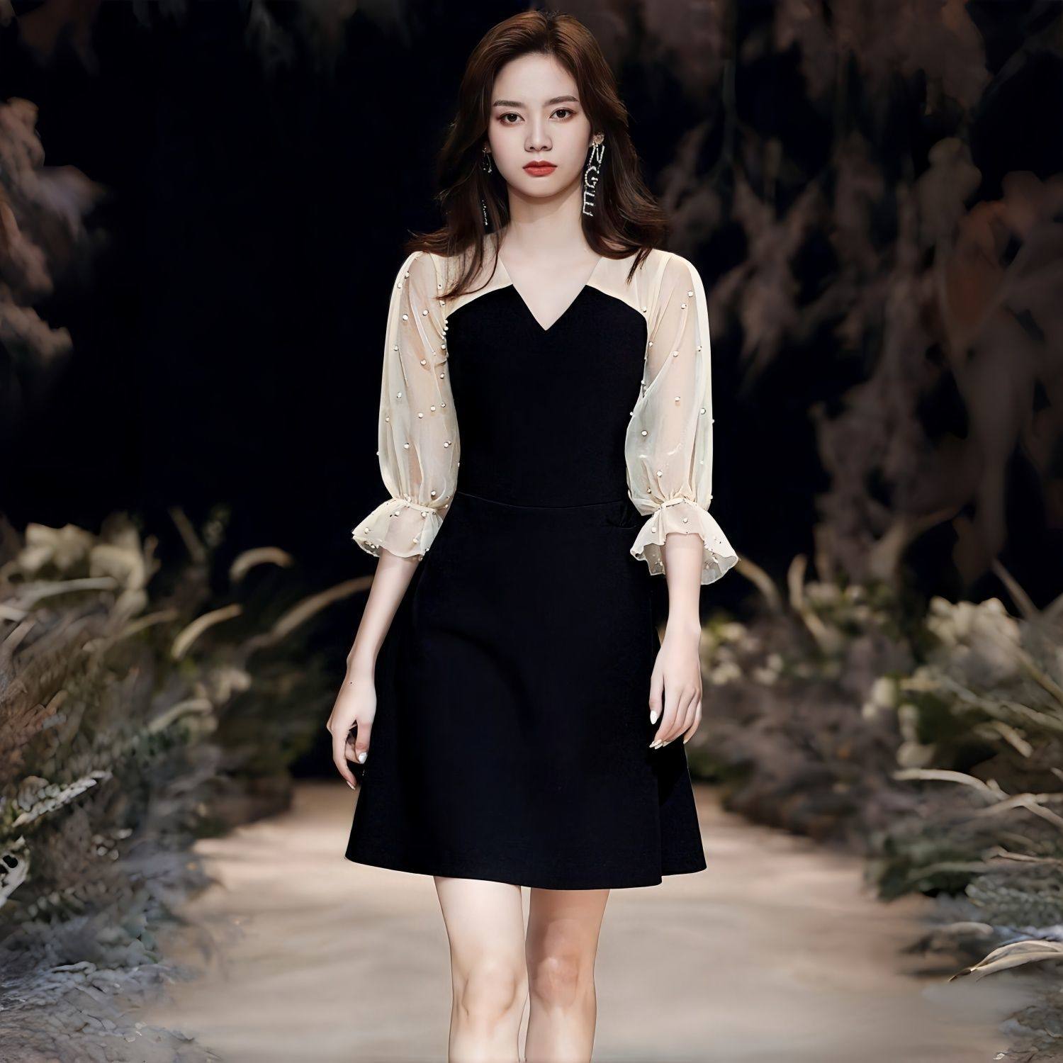 📚 黑色晚礼服裙宴会气质轻奢小众高端法式赫本风艺考成人礼日常可穿