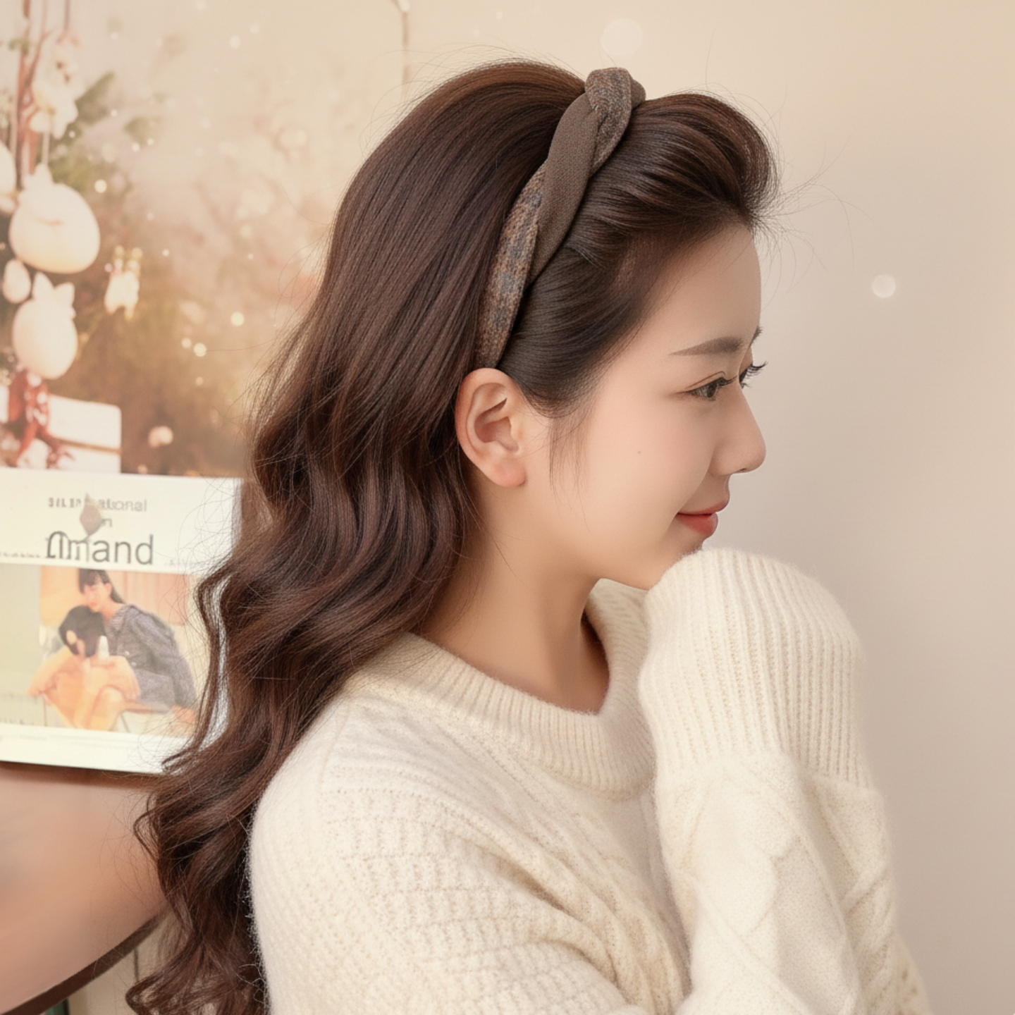 📚 美拉德麻花高颅顶发箍女款秋冬洋气时尚显脸小减龄头箍洗脸发卡